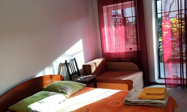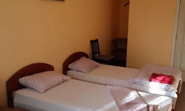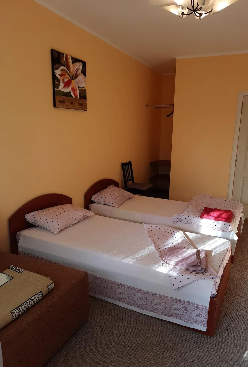 Номера трехместные, двуспальная кровать, плюс раскладной диван на одно место или две односпальные кровати и одноместный диван. В каждом номере душ, туалет, холодная и горячая вода круглосуточно. Все для комфортного проживания.