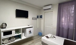 Не понимаю почему такой низкий рейтинг. Место отличное, в номерах все есть, очень гостеприимные и добрые хозяева, я получил положительные впечатления от общения с ними. В номере есть чайник, микроволновка и холодильник, так-же посуда и даже бокалы для вина! На улице мангальная зона, очень продуманная и удобная, фотки выложу. Пляж в 5 минутах ходьбы, есть как дикий, так и городской. Тут на этом побережье самые лучшие закаты!