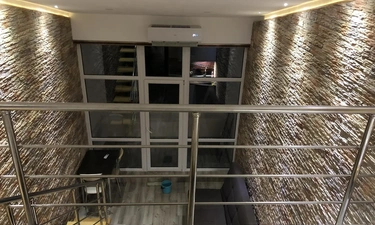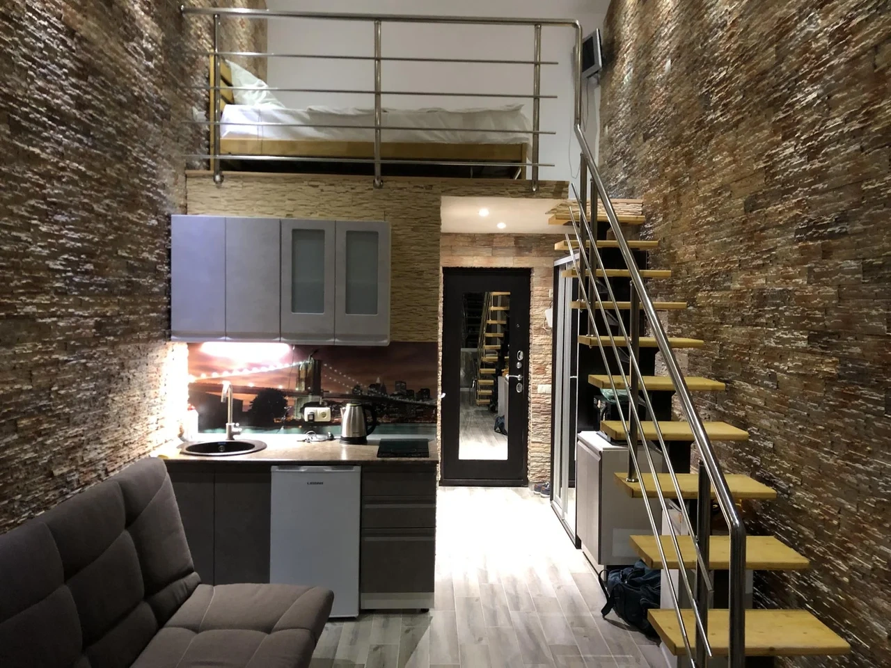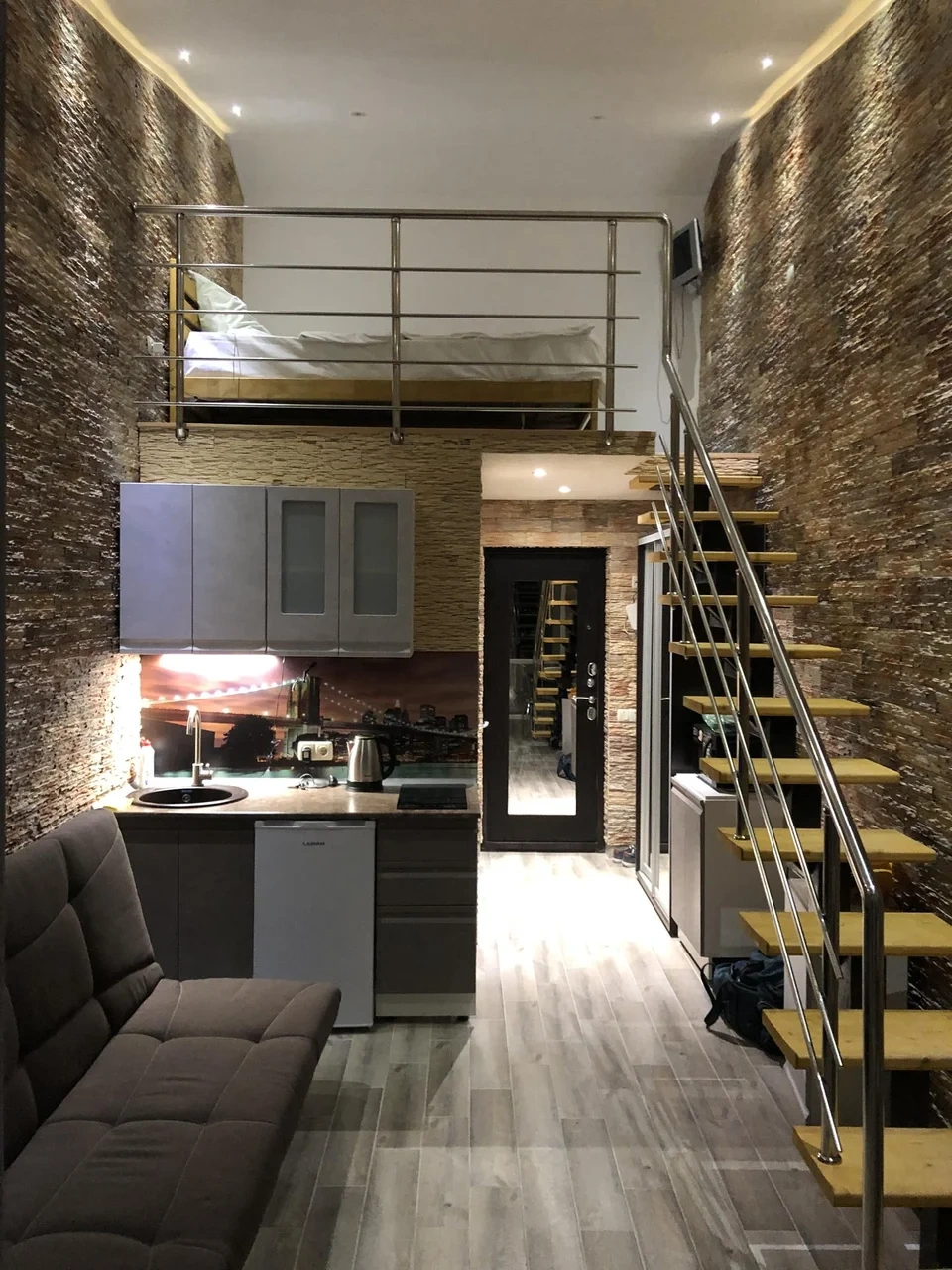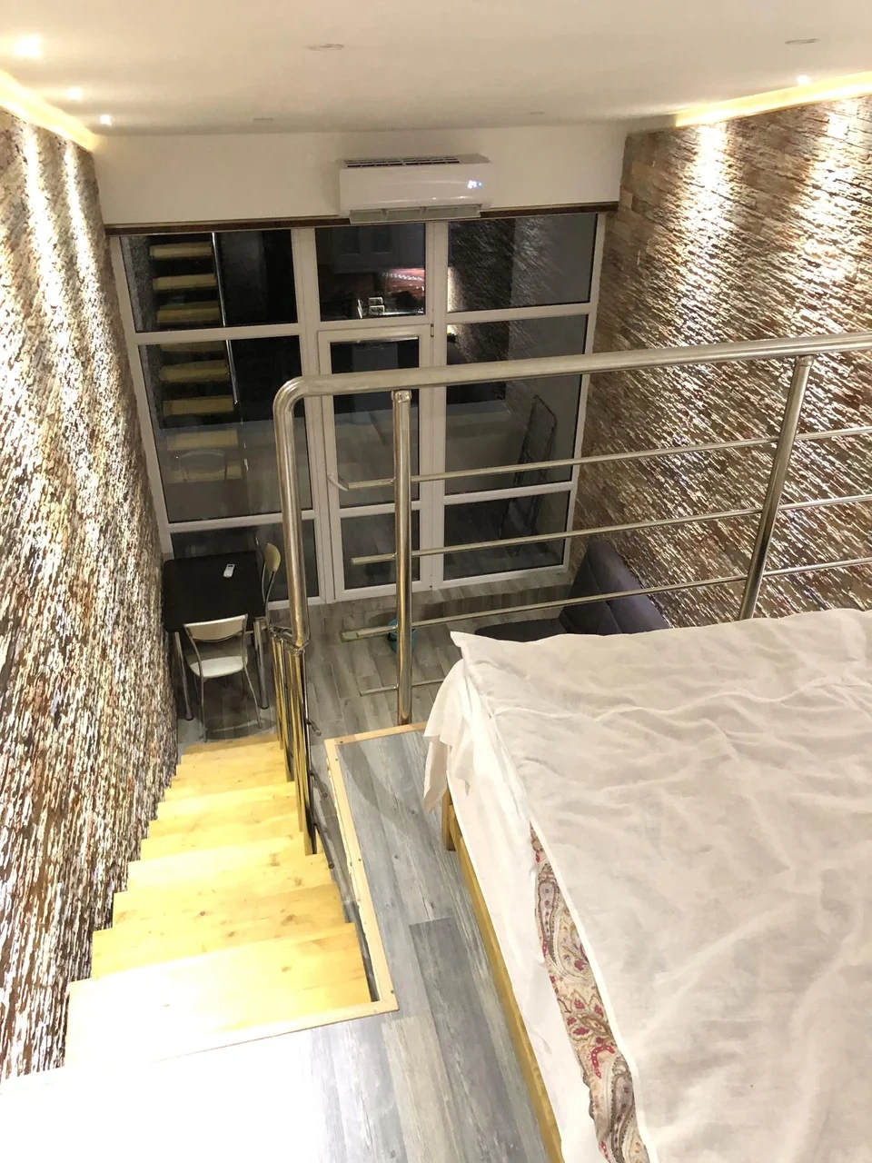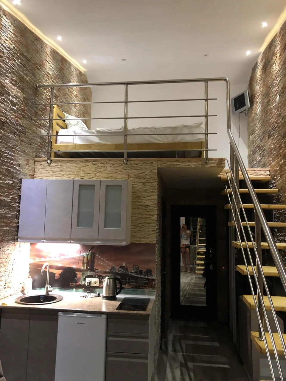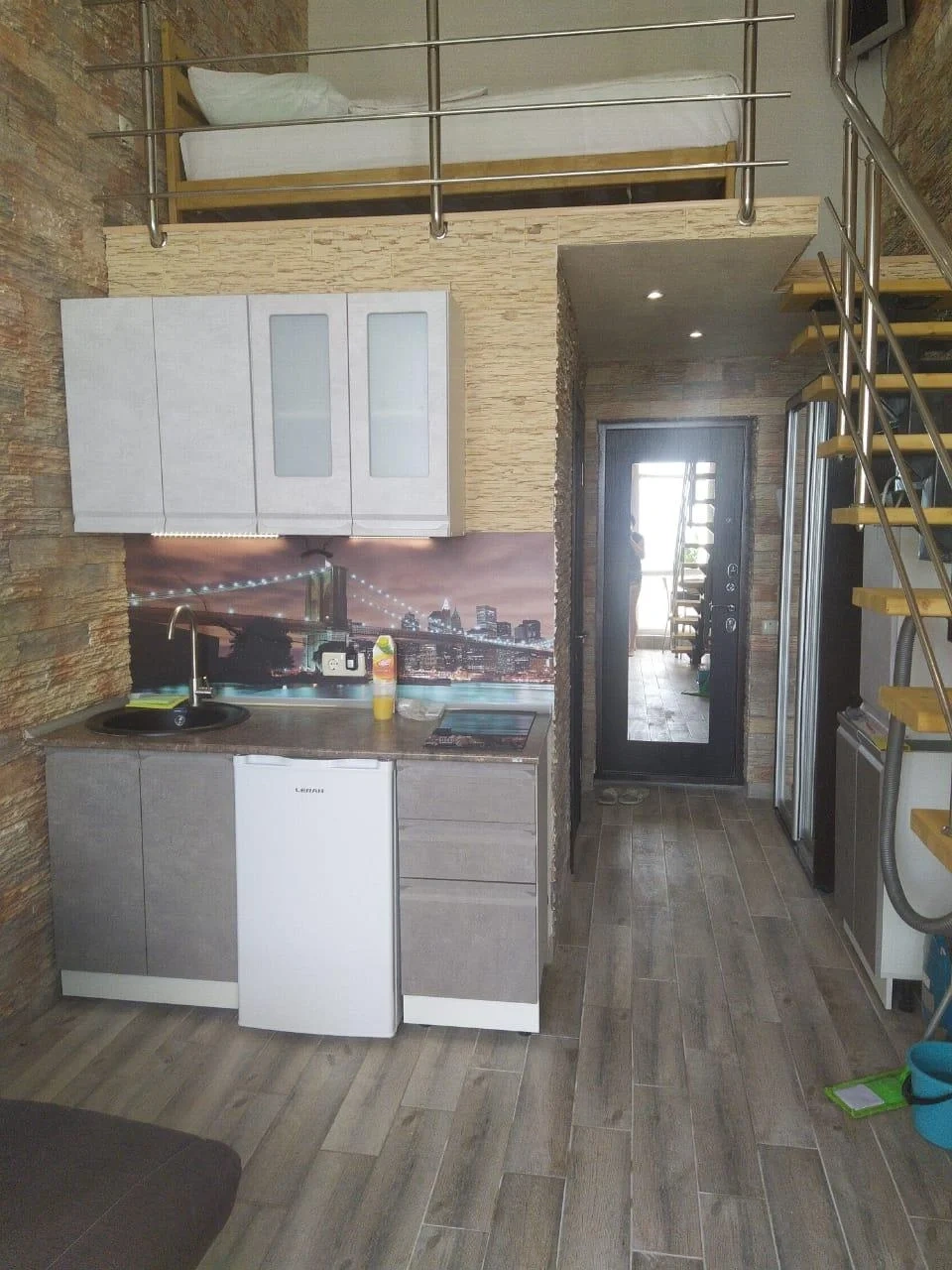 В комнате мощный инверторный кондиционер, тёплые полы,телевизор, бесплатный Wi Fi, в кухонной зоне холодильник, индукционная варочная плита, набор посуды, электрочайник… в спальной зоне второго уровня большая 2х спальная кровать, на первом уровне двухспальны раскладной диван,,, постельной бельё на 4х человек предоставляется, апартаменты оборудованы системой «умный дом» с голосовым помощником «Алиса».