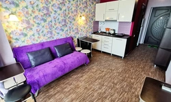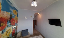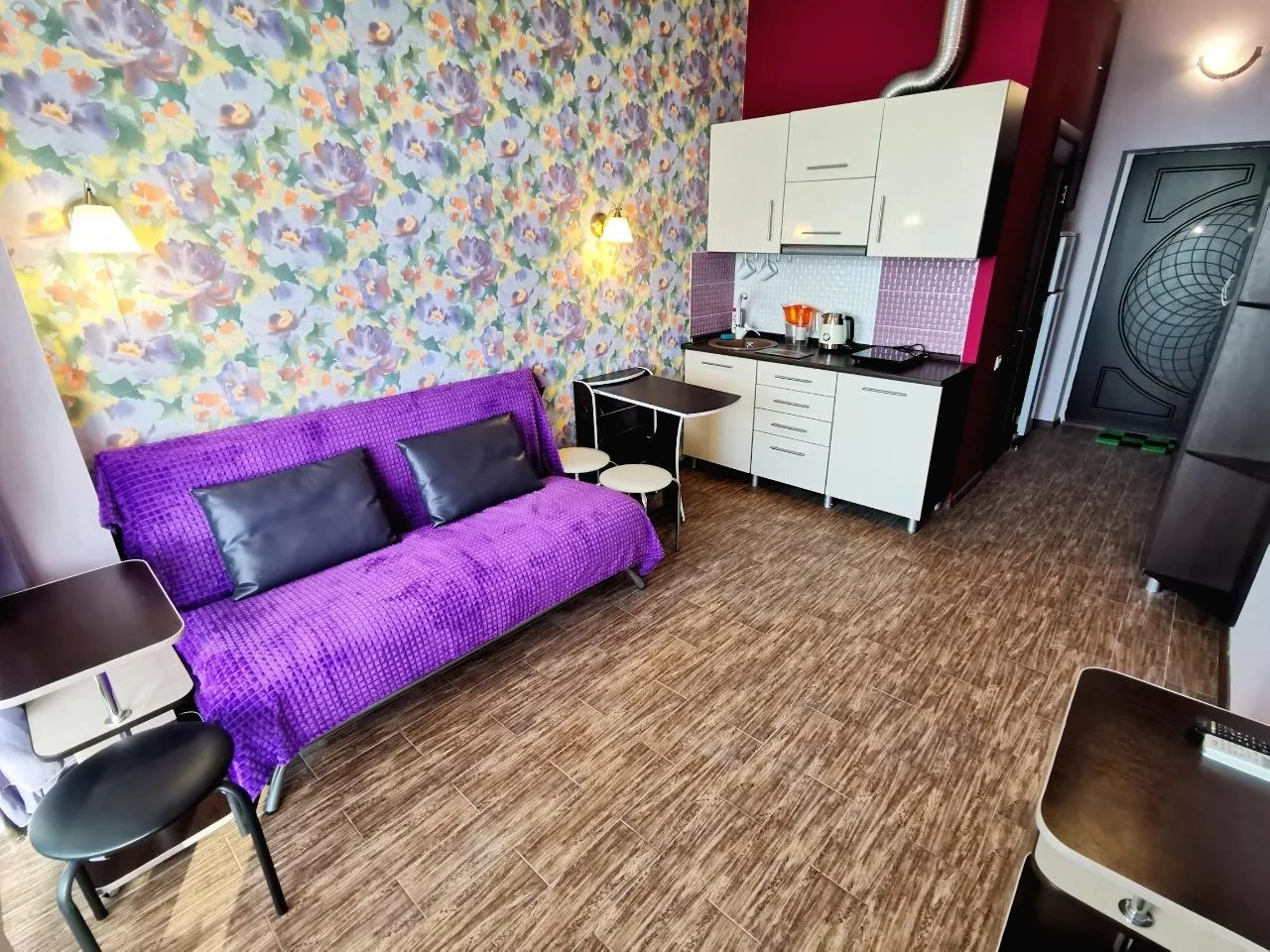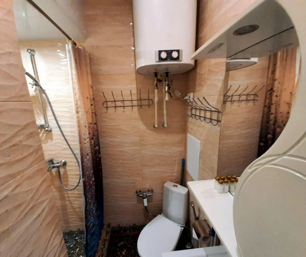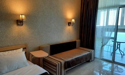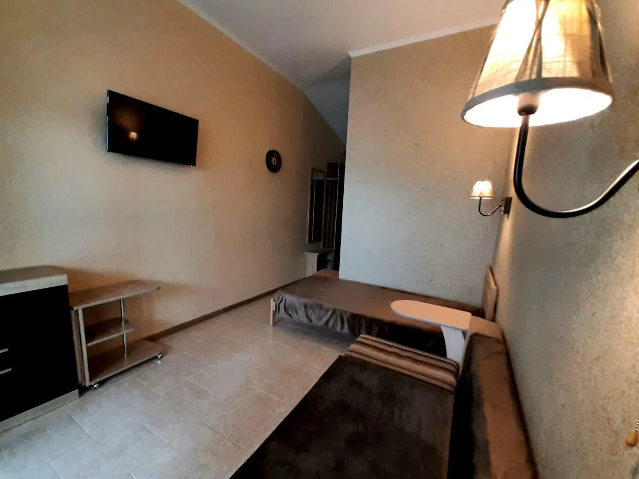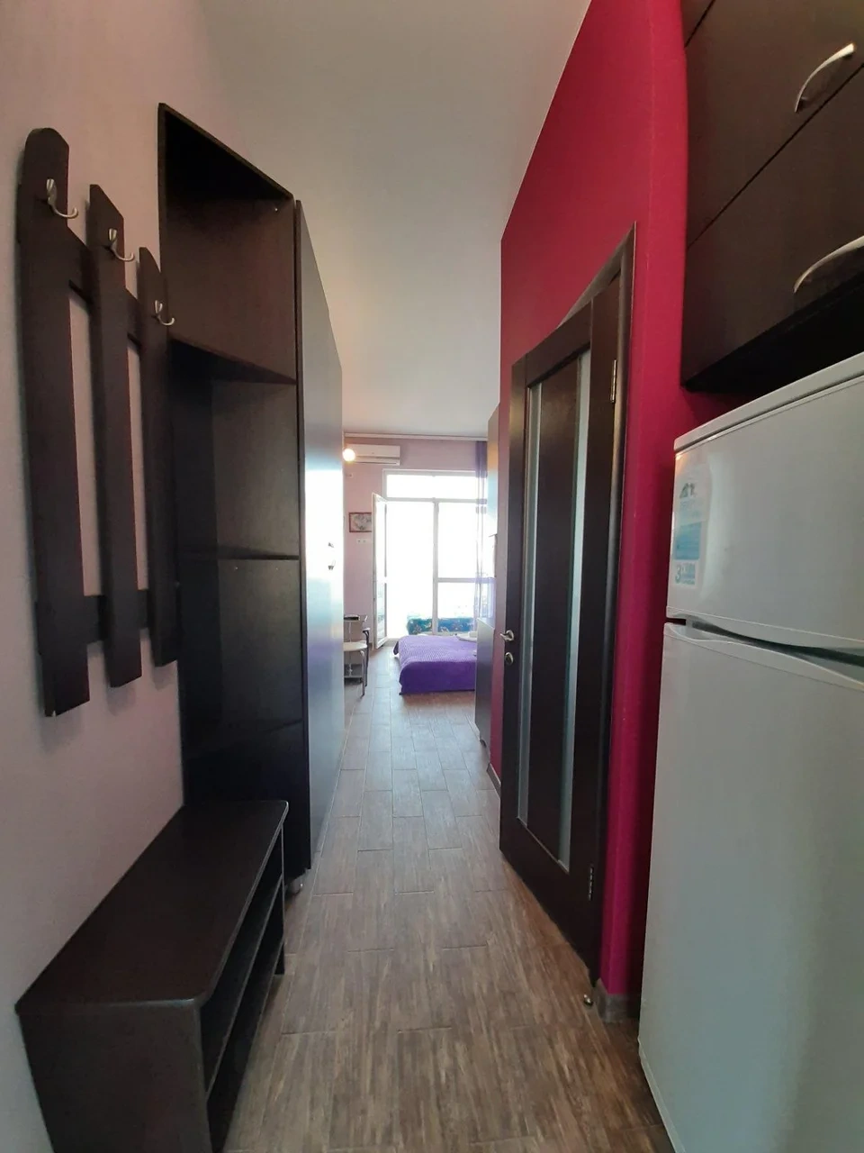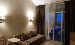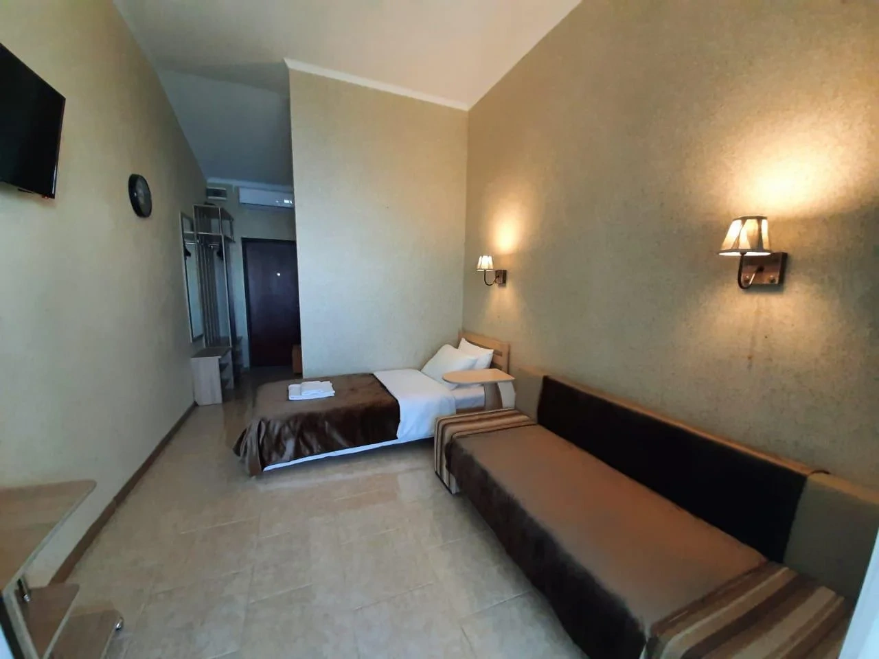 Апартамент с видом на море. Двуспальная кровать в комнате и раскладной диванчик на балконе. Балкон остеклён раздвижной системой. В номере кухня, душ, санузел, кондиционер ВайФай.