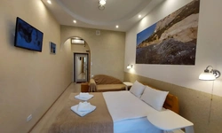 Возможно размещение на 1 двуспальной, 1 односпальная + 1 доп.место (раскладная кровать). Стоимость дополнительного места - 500 руб.