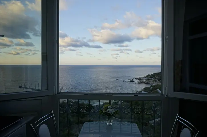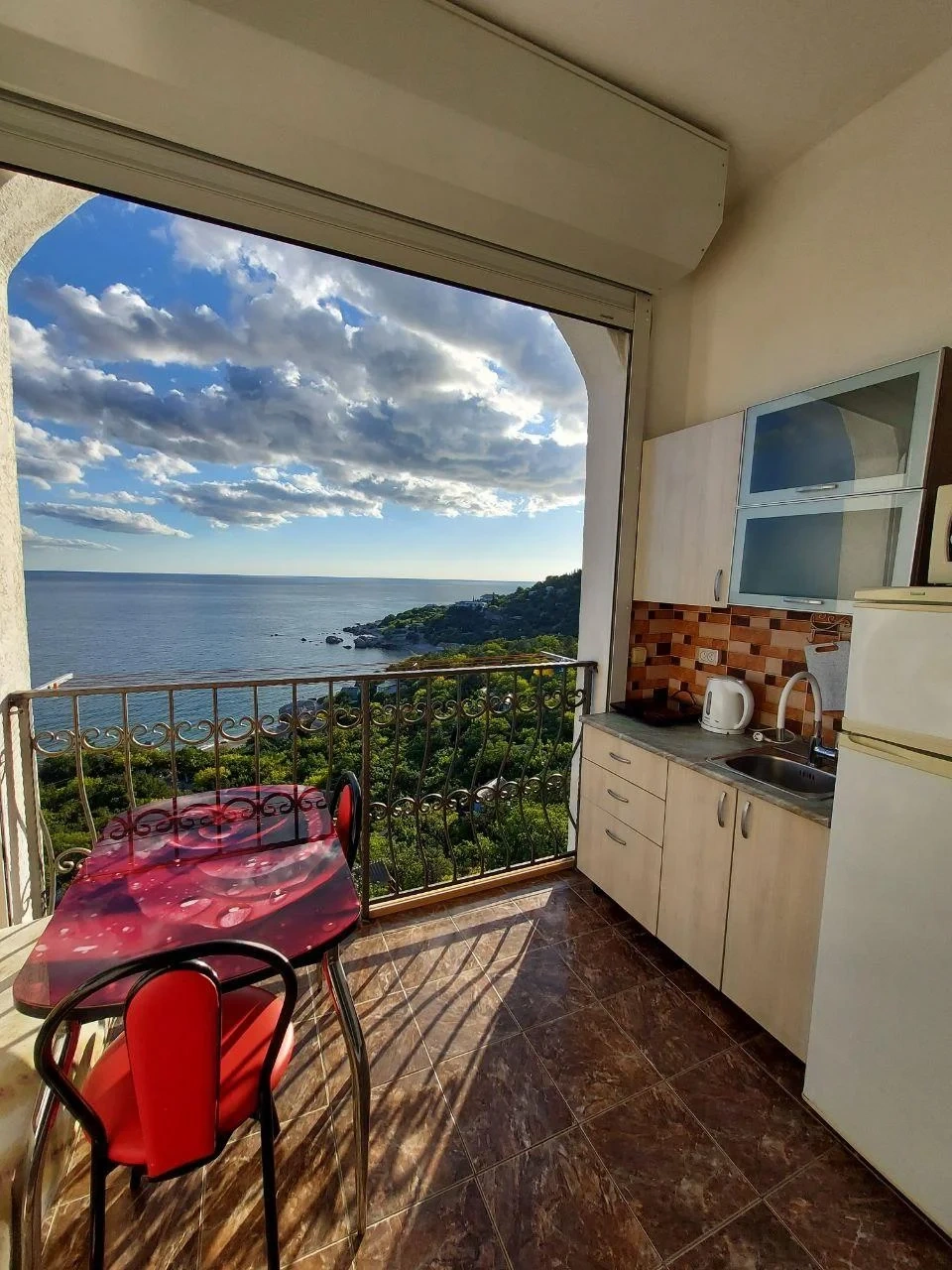 Апартамент с панорамным видом на море и бухту Ласпи. Все удобства в номере, кухня, кондиционер, ВайФай.