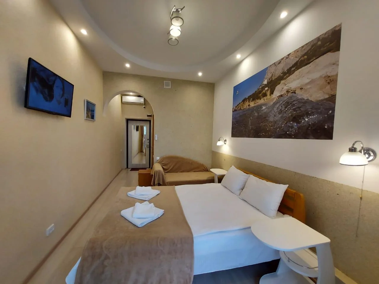Апартамент с видом на море, 6й этаж, для двух человек (одна большая кровать, King-Size). В номере тёплый пол, новый ремонт и комплектация.