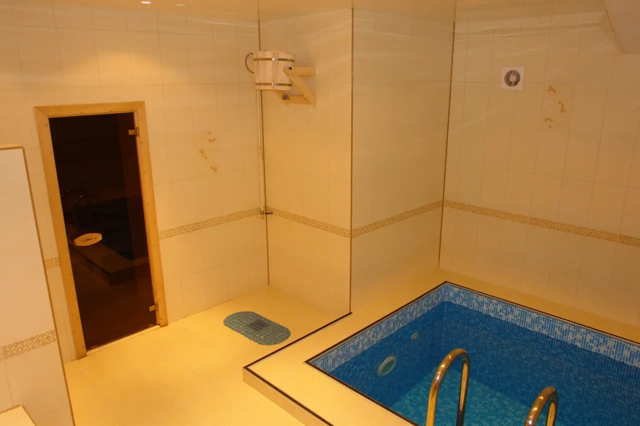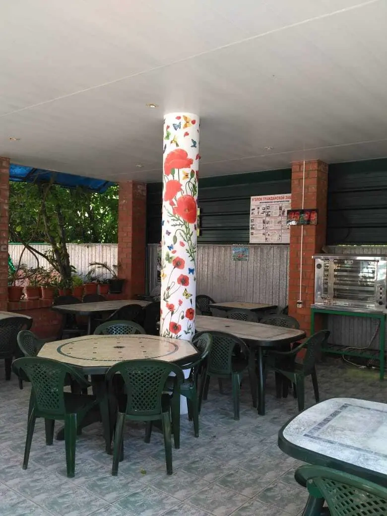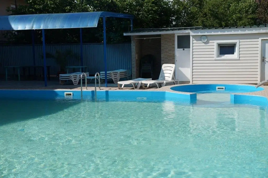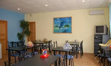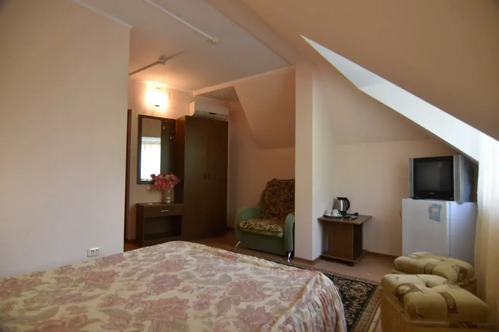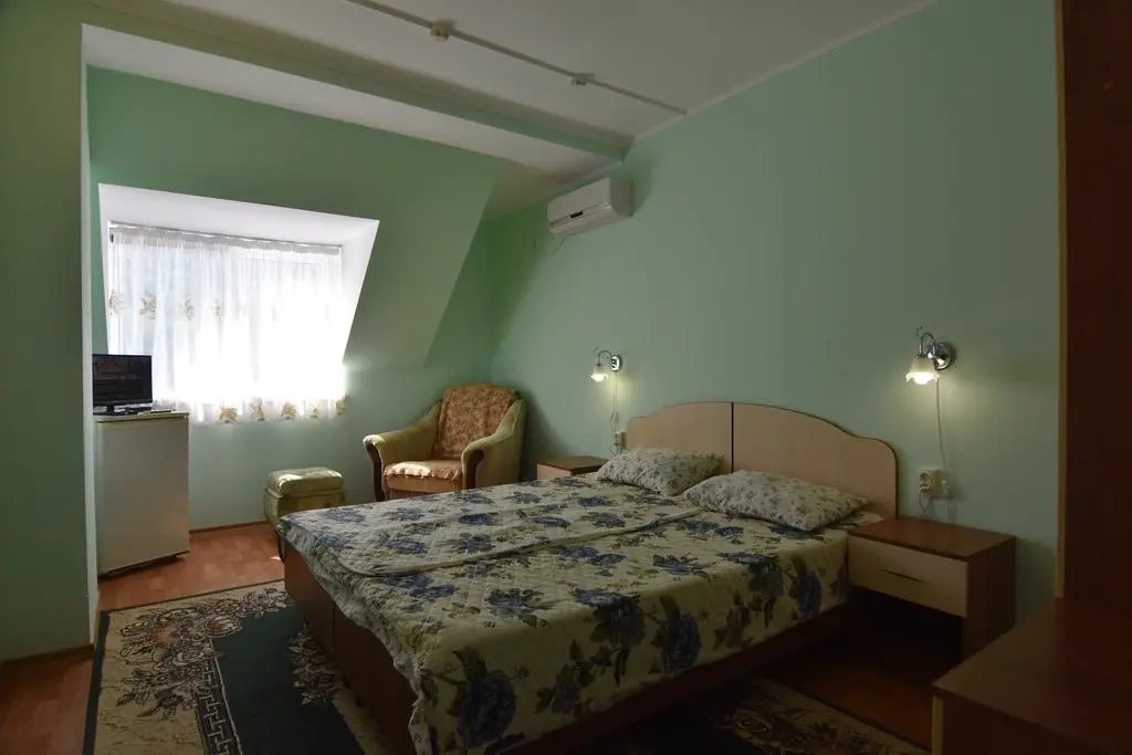 Меблированная комната: диван 2х спальный и 1 кресло-кровать , холодильник, тв, сплит. Санузел с душевой кабиной рядом, на этом же этаже, один на 3 номера