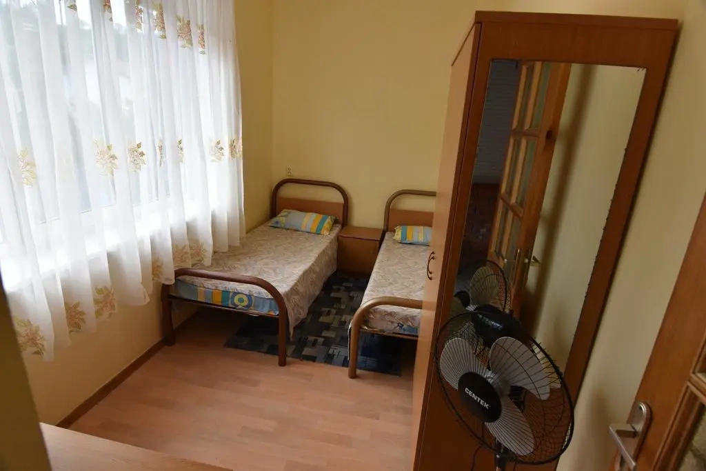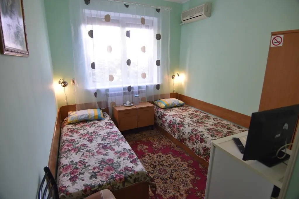 Меблированная комната: 2 односпальные кровати, холодильник, тв, сплит. Санузел с душевой кабиной рядом на этом же этаже, один на 3 номера.