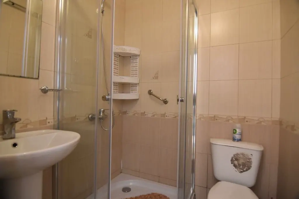 Меблированная комната: 2х спальная кровать, холодильник, тв, сплит. Санузел с душевой кабиной в номере.