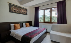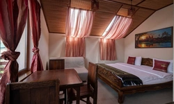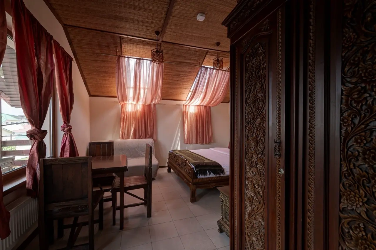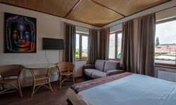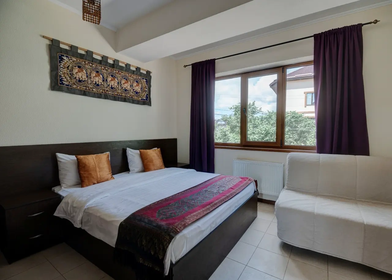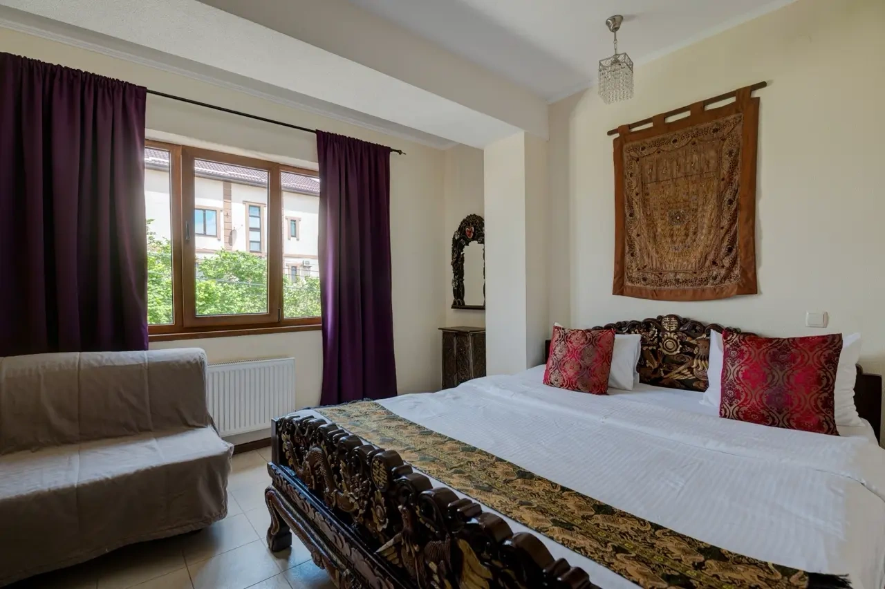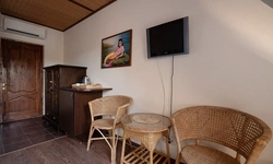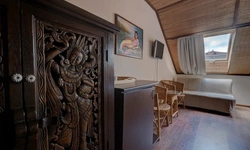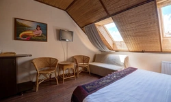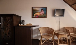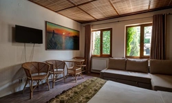 Вместимость: 2 взрослых+1 ребенок на дополнительном спальном месте, либо 2 взрослых+1 взрослый на дополнительном спальном месте. Проживание одного ребенка до 1 года с двумя взрослыми без предоставления дополнительного спального места – БЕСПЛАТНО. Площадь номера: 16 м2 Уютный однокомнатный номер, прекрасно подходит для размещения пар и семей с детьми, оборудованным всем необходимым для комфортного проживания. В номере предусмотрены: большая двухспальная кровать, раскладной диван или кресло-кровать, шкаф для одежды, кондиционер, телевизор с плоским экраном, холодильник, электрический чайник, индивидуальный санузел с ванной, фен, туалетно-косметические принадлежности, халаты, тапочки. Чайный набор (пакетированный чай, кофе, сливки) – приятный бонус для наших гостей. На этаже расположены: гладильная доска, утюг.