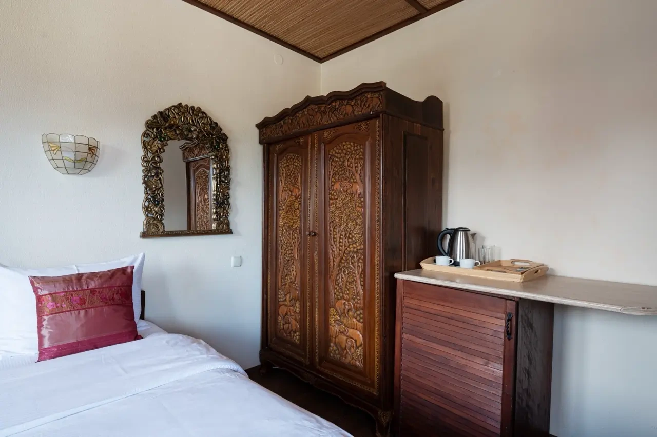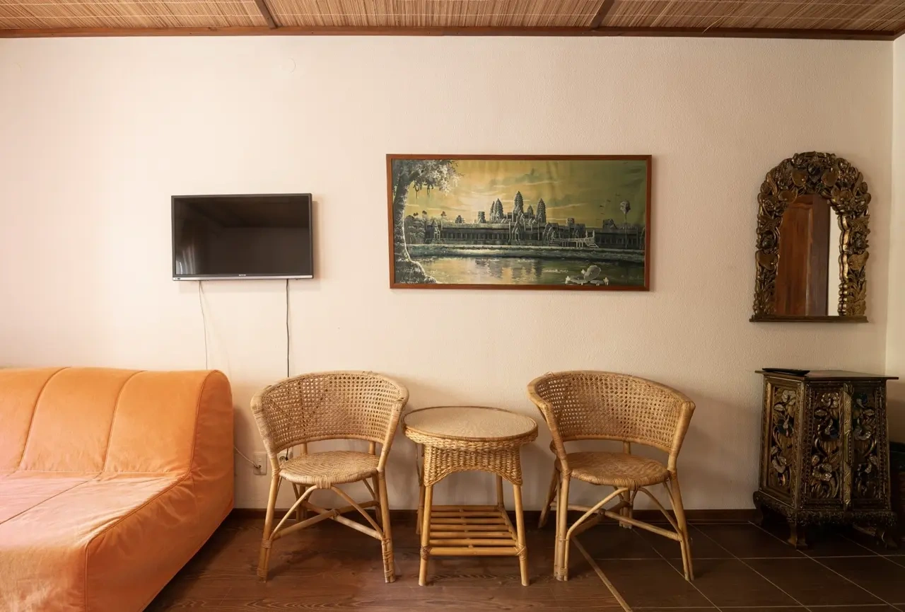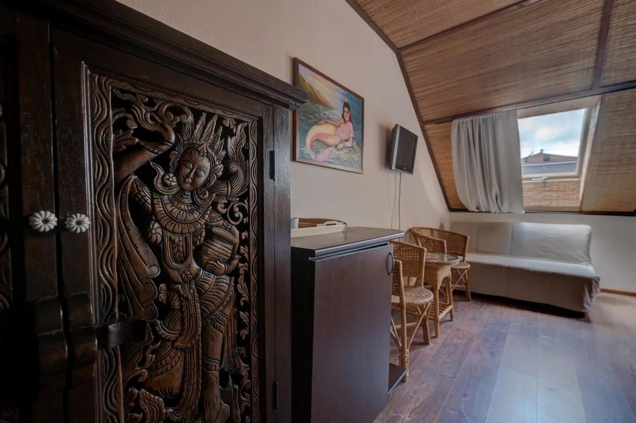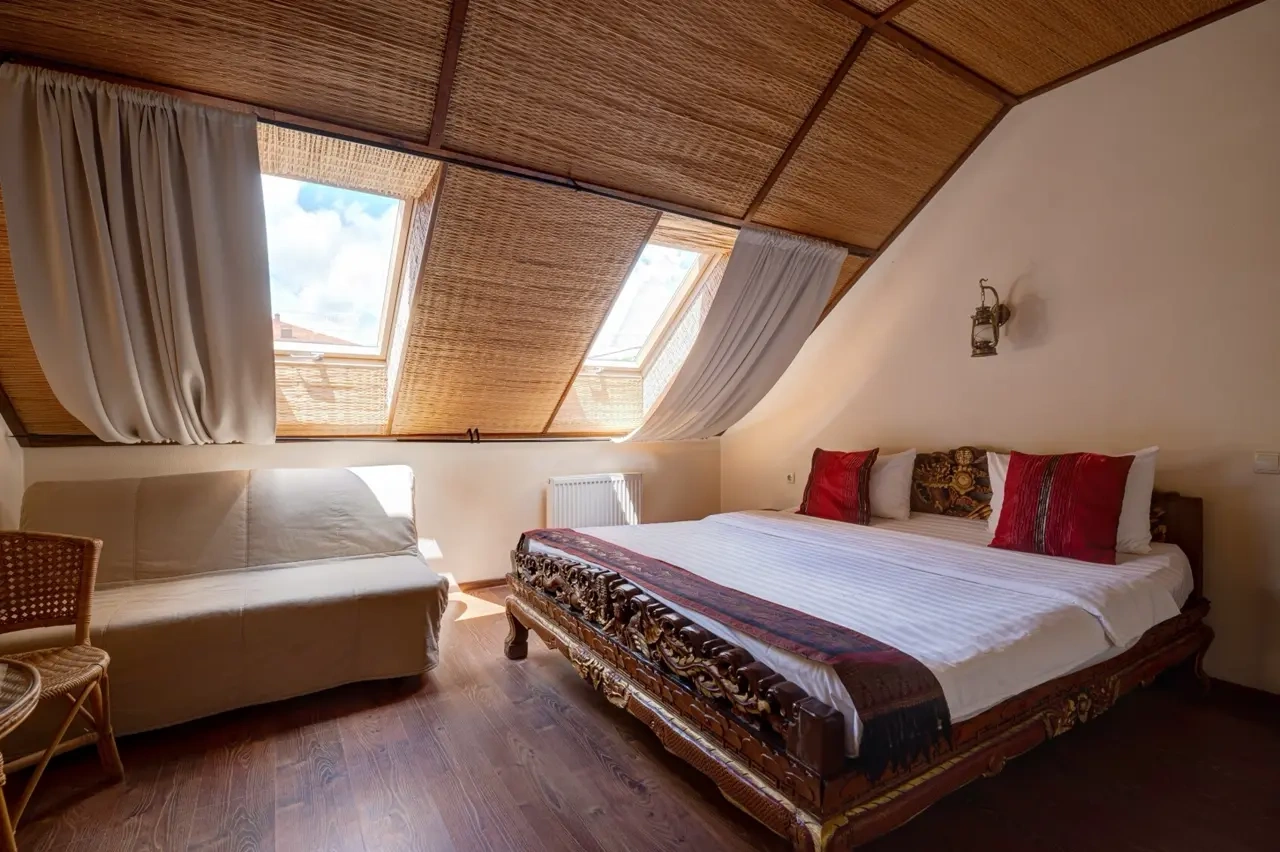 Вместимость: 2 взрослых+1 ребенок на дополнительном спальном месте, либо 2 взрослых+1 взрослый на дополнительном спальном месте. Проживание одного ребенка до 1 года с двумя взрослыми без предоставления дополнительного спального места – БЕСПЛАТНО. Площадь номера: 16 м2 Уютный однокомнатный номер, прекрасно подходит для размещения пар и семей с детьми, оборудованным всем необходимым для комфортного проживания. В номере предусмотрены: большая двухспальная кровать, раскладной диван или кресло-кровать, шкаф для одежды, кондиционер, телевизор с плоским экраном, холодильник, электрический чайник, индивидуальный санузел с ванной, фен, туалетно-косметические принадлежности, халаты, тапочки. Чайный набор (пакетированный чай, кофе, сливки) – приятный бонус для наших гостей. На этаже расположены: гладильная доска, утюг.