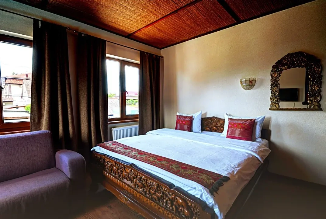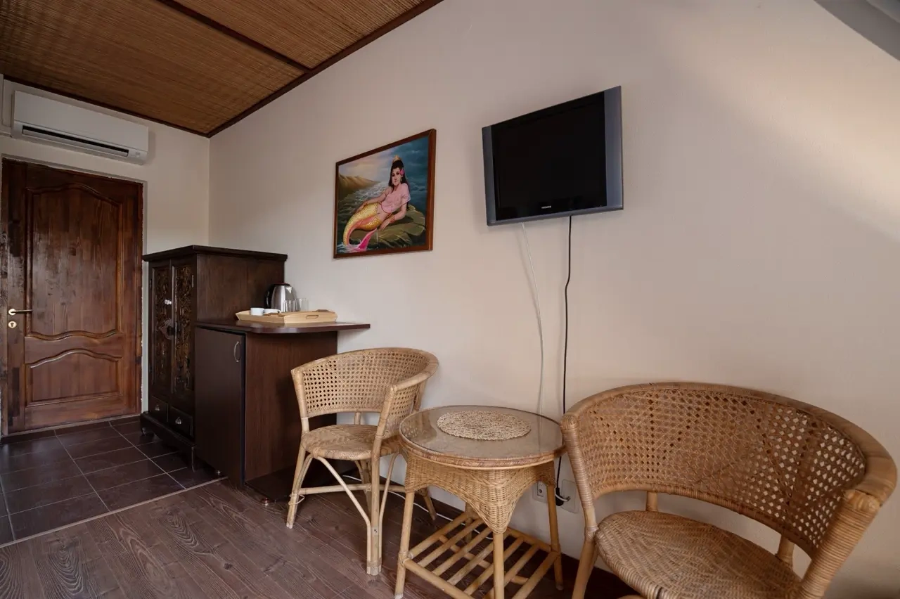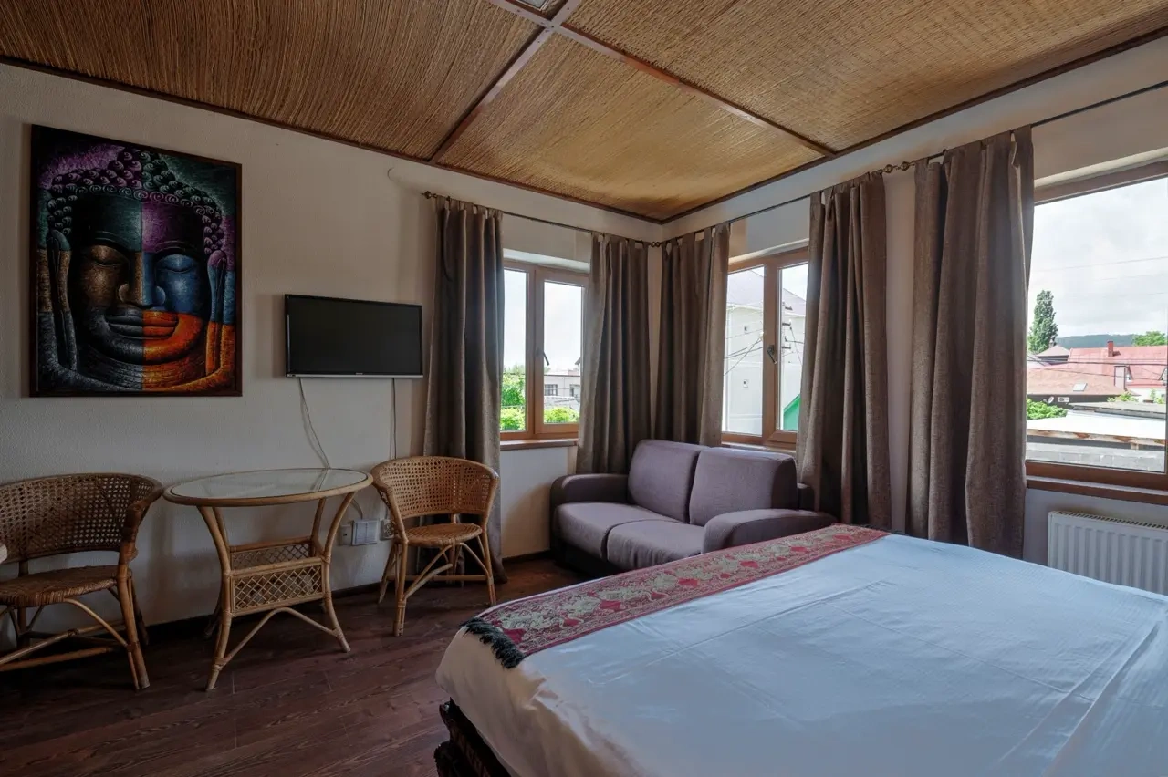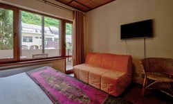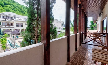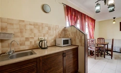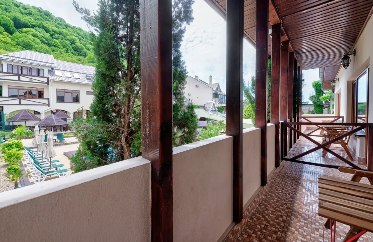 Вместимость: 2 взрослых+2 ребенка на дополнительном спальном месте, либо 2 взрослых+1 взрослый на дополнительном спальном месте. Дополнительное спальное место для ВТОРОГО РЕБЕНКА оплачивается отдельно при заселении. Проживание одного ребенка до 1 года с двумя взрослыми без предоставления дополнительного спального места – БЕСПЛАТНО. Площадь номера: 25 м2 Уютный однокомнатный номер с балконом и мини-кухней, прекрасно подходит для размещения пар и семей с детьми, оборудованным всем необходимым для комфортного проживания. В номере предусмотрены: большая двухспальная кровать, раскладной диван, шкаф для одежды, кондиционер, телевизор с плоским экраном, холодильник, электрический чайник, сейф, индивидуальный санузел с ванной, фен, туалетно-косметические принадлежности, халаты, тапочки. Чайный набор (пакетированный чай, кофе, сливки) – приятный бонус для наших гостей. На этаже расположены: гладильная доска, утюг.