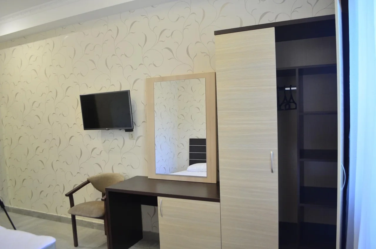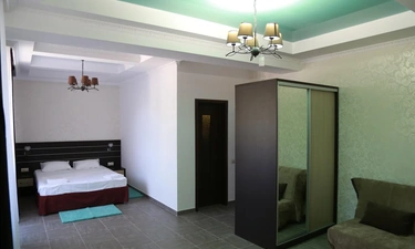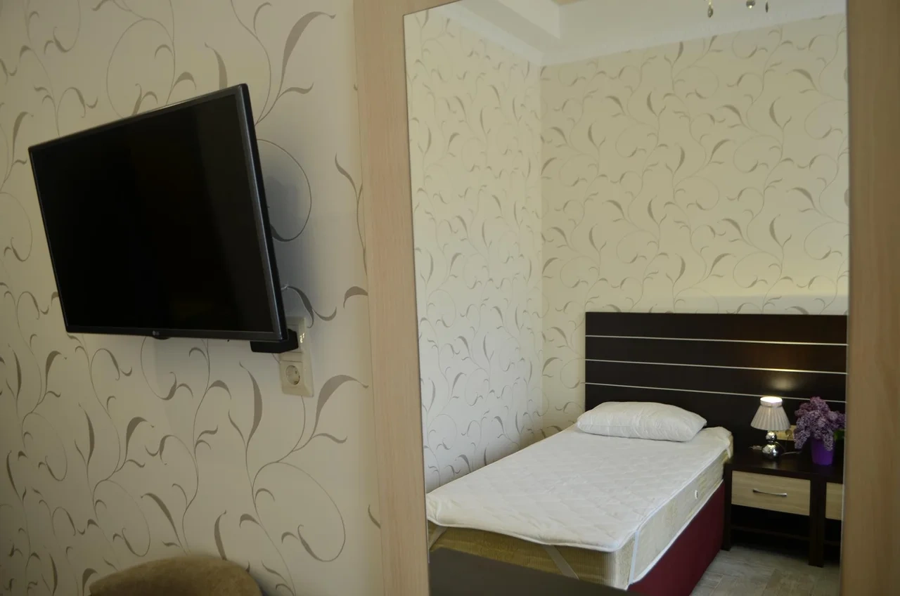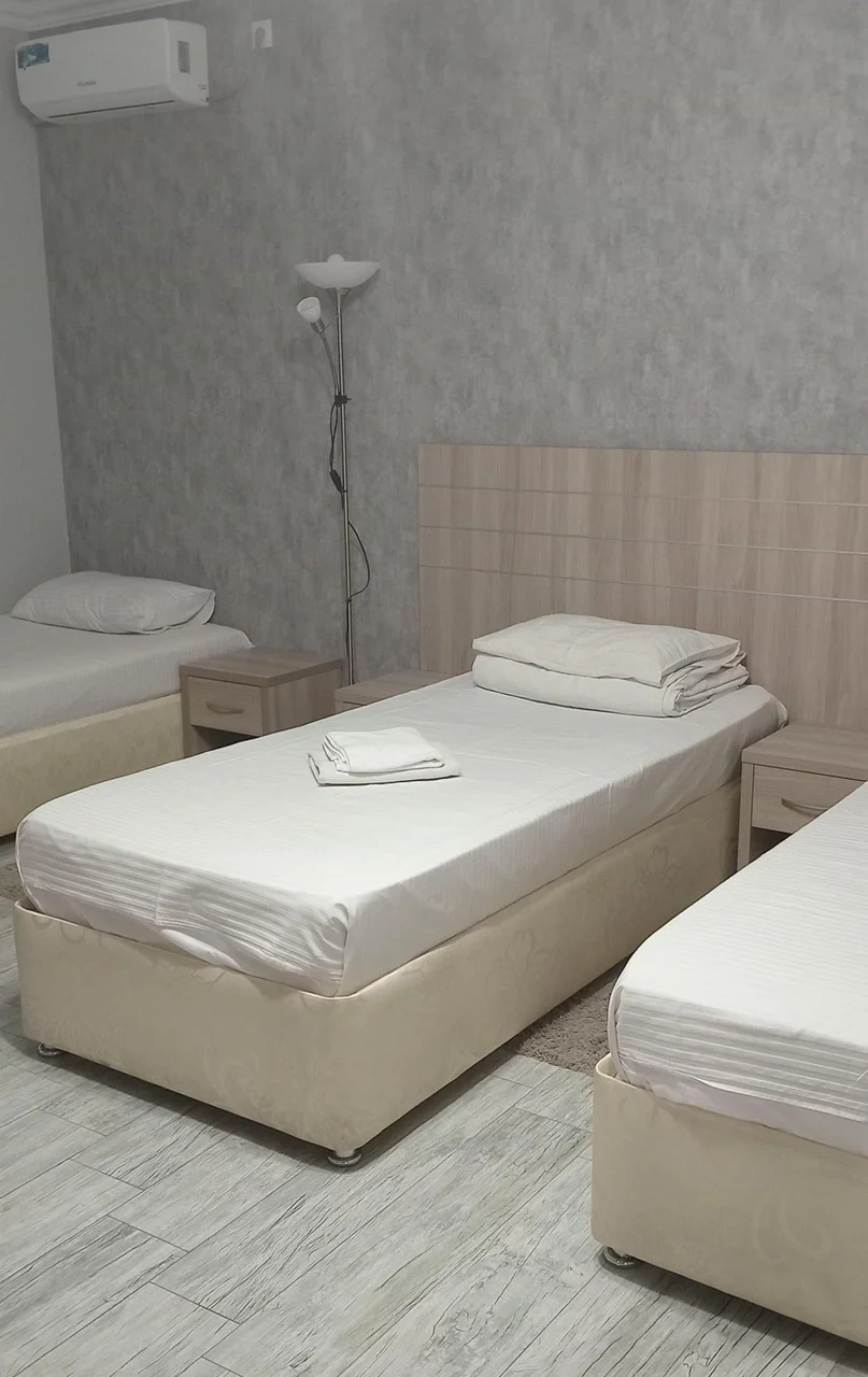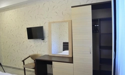 Каждая комната оснащён кондиционером, холодильником, тонким телевизором качество FullHD и конечно кабельным TV, собственной просторной ванной комнатой с санузлом, большой кроватью с ортопедическим матрасом.