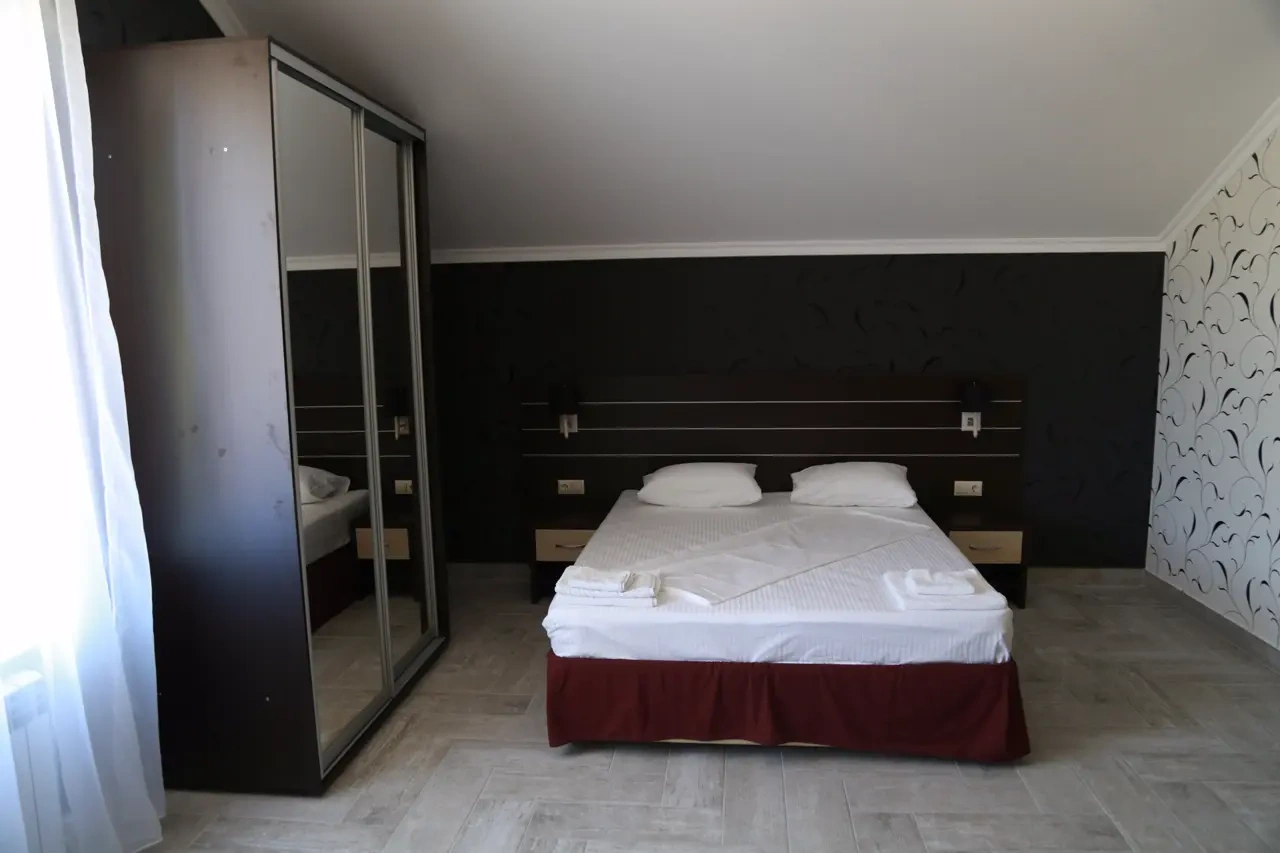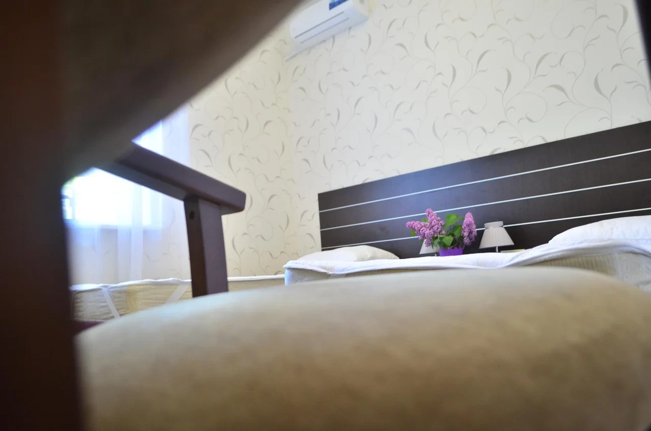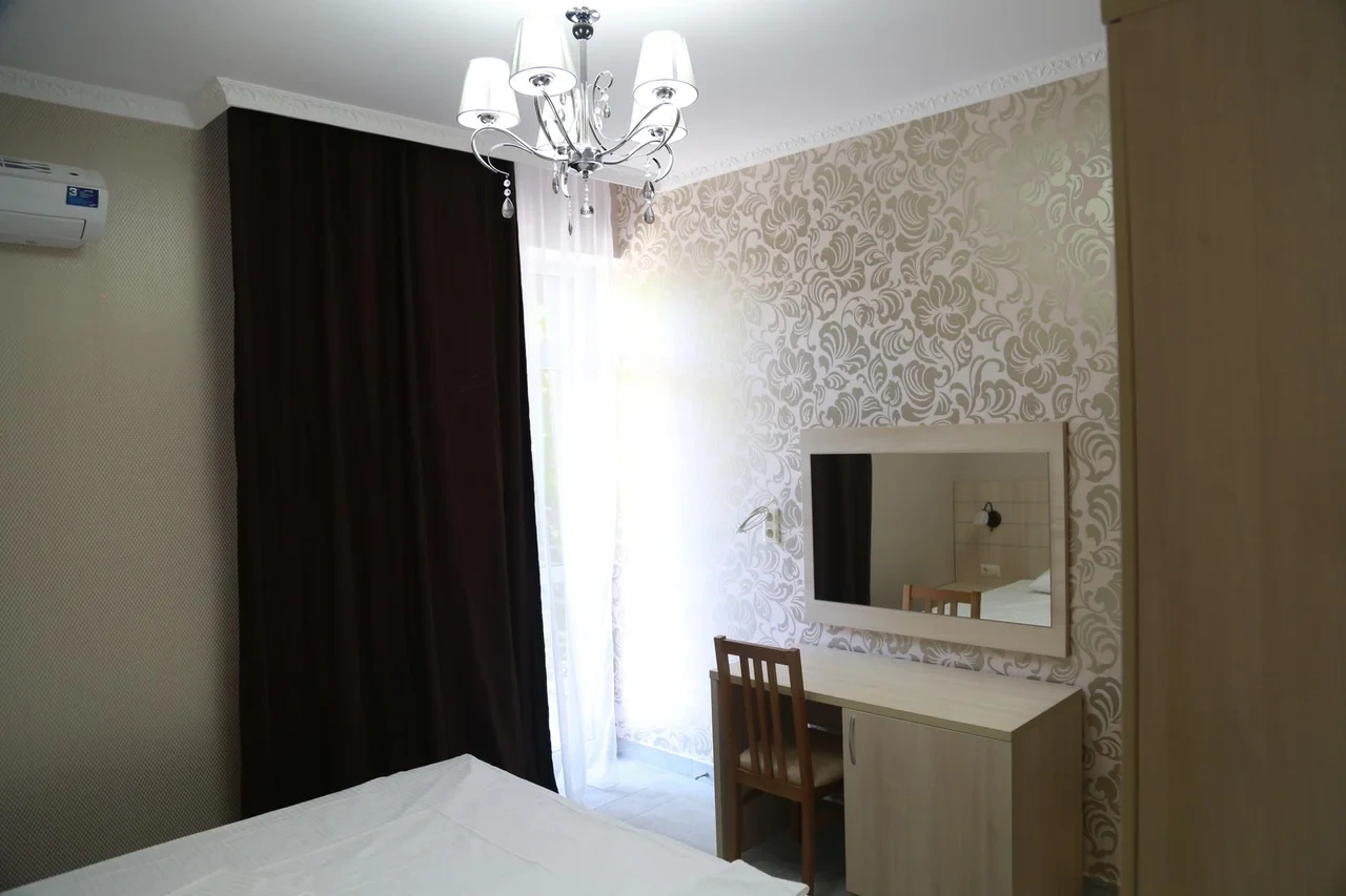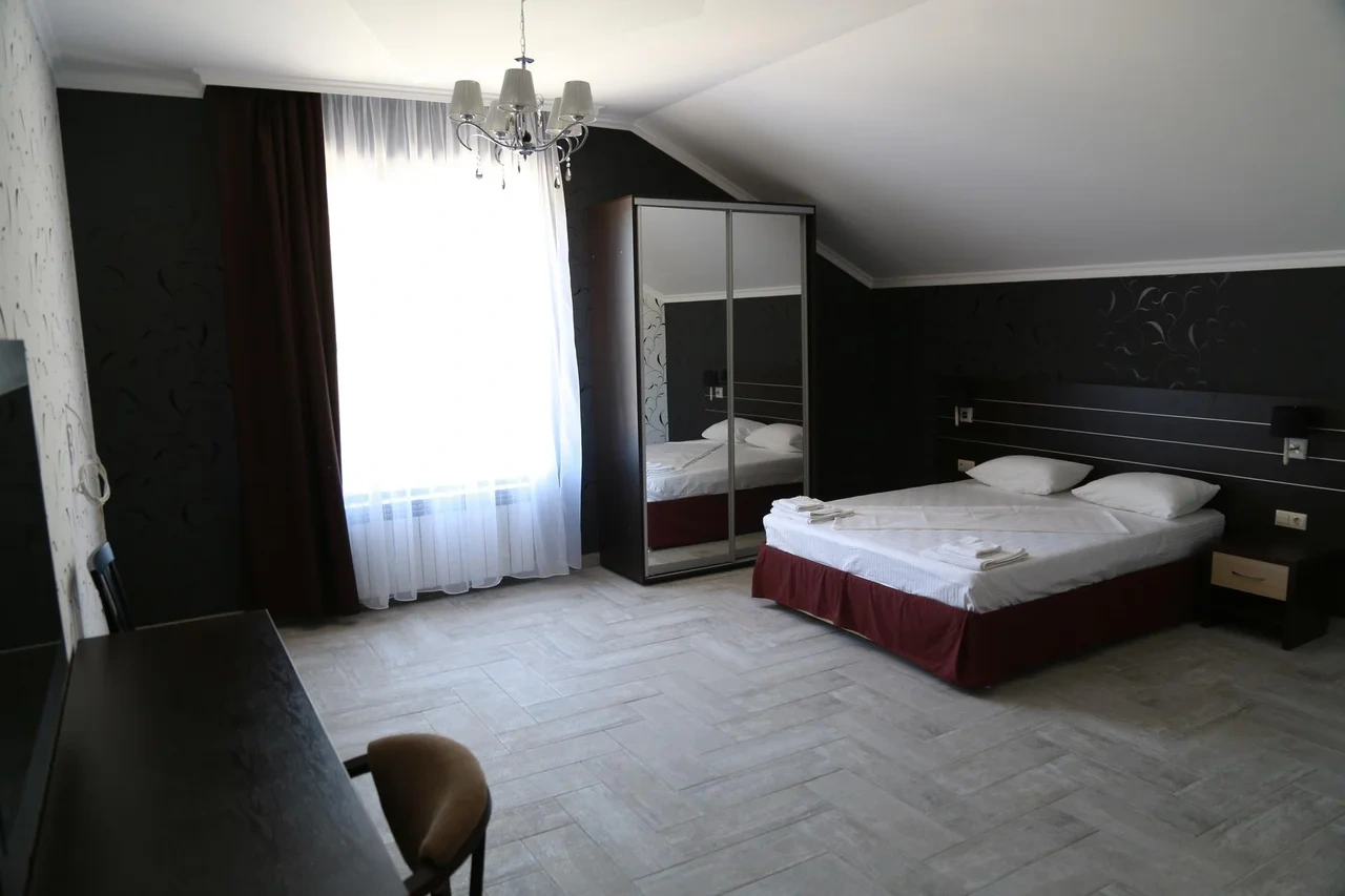 Каждый номер оснащён кондиционером, холодильником, тонким телевизором качество FullHD и конечно кабельным TV, собственной просторной ванной комнатой с санузлом, большой кроватью с ортопедическим матрасом. В зимний период в номерах стоят чайнички с замечательным чаем и кофе - бесплатно. Летом конечно же прохладная водичка. На территории гостевого дома PARADIS есть места для парковки, зона отдыха с уютной беседкой, высокоскоростной интернет с бесплатным доступом к WI-FI, по всей территории гостевого дома PARADIS.