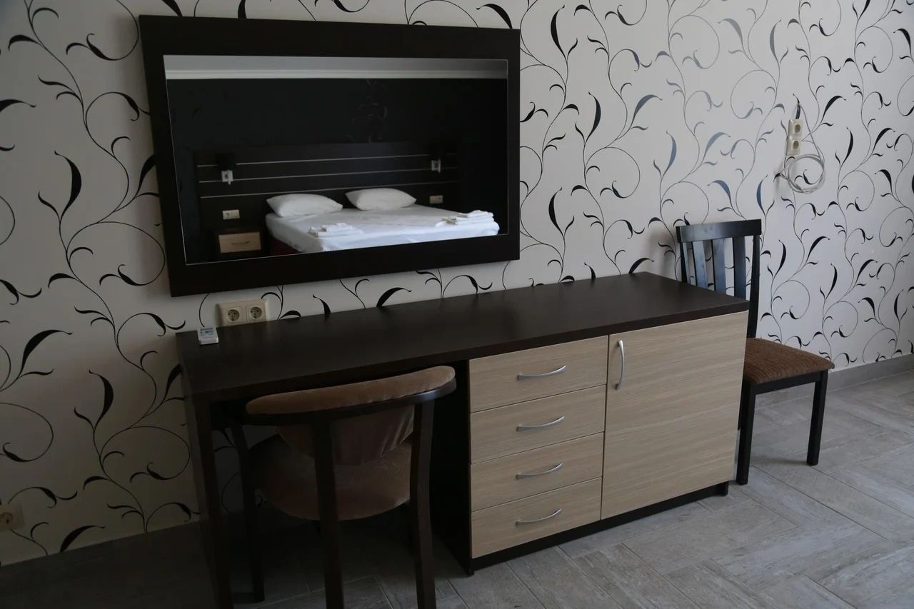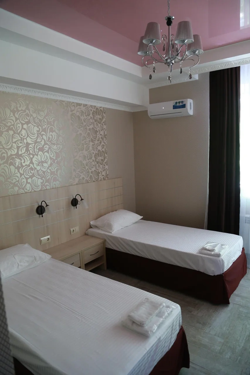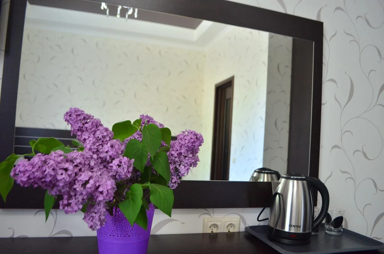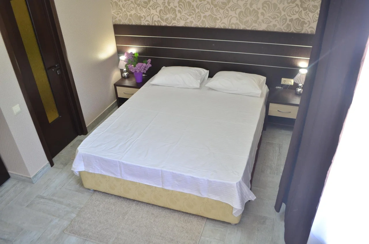 Каждый номер оснащён кондиционером, холодильником, тонким телевизором качество FullHD и конечно кабельным TV, собственной просторной ванной комнатой с санузлом, большой кроватью с ортопедическим матрасом. В зимний период в номерах стоят чайнички с замечательным чаем и кофе - бесплатно. Летом конечно же прохладная водичка. На территории гостевого дома PARADIS есть места для парковки, зона отдыха с уютной беседкой, высокоскоростной интернет с бесплатным доступом к WI-FI, по всей территории гостевого дома PARADIS.