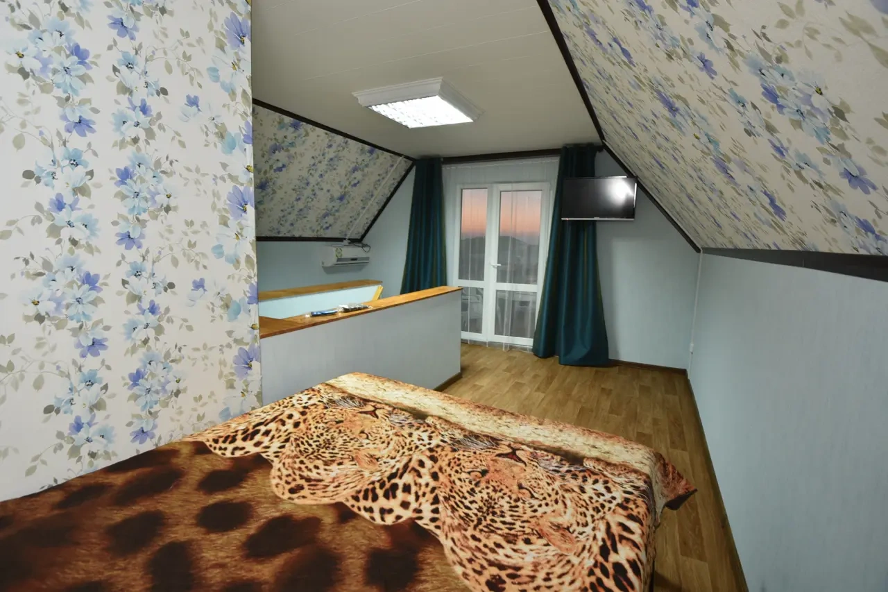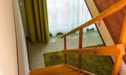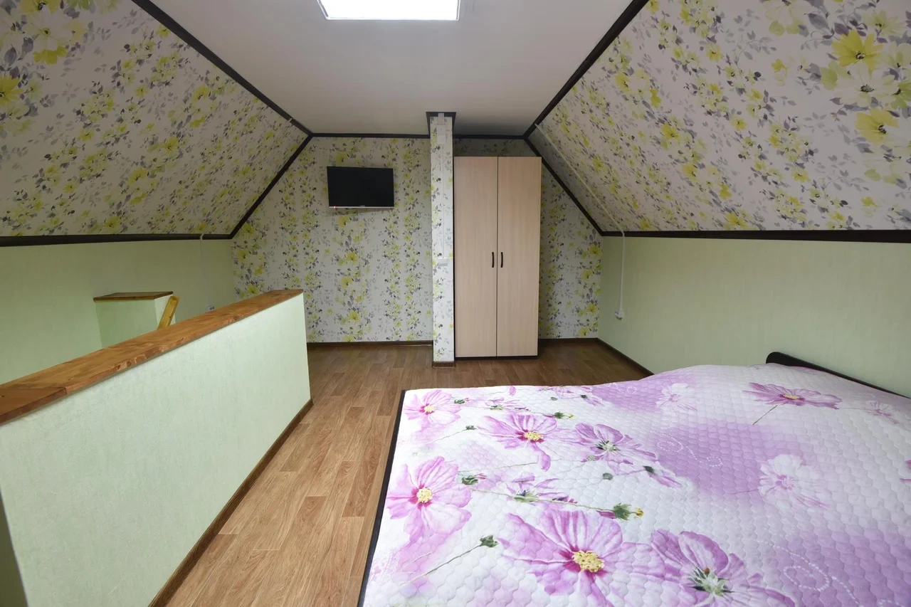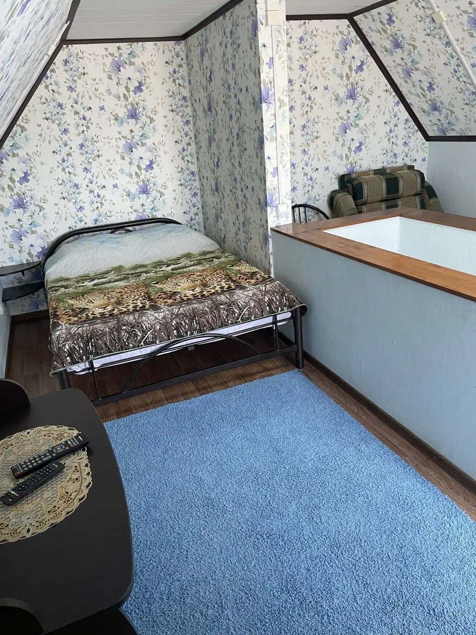 Комнаты изолированные. В первой комнате двухместный диван, кухня, холодильник, стол, балкон, лестница во вторую комнату. Во второй комнате двуспальная кровать, тумбочка, шкаф, телевизор, сплит-система. В номере санузел с душем.