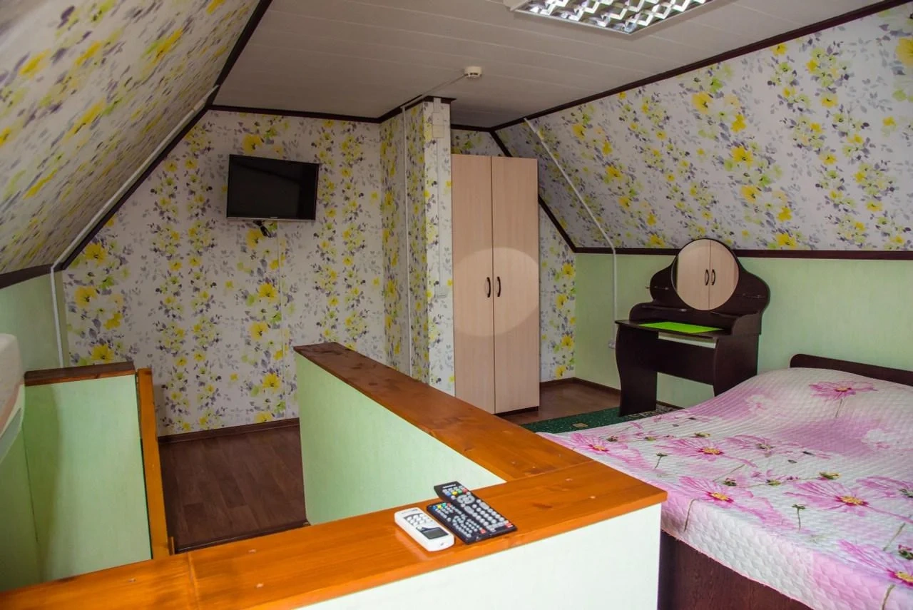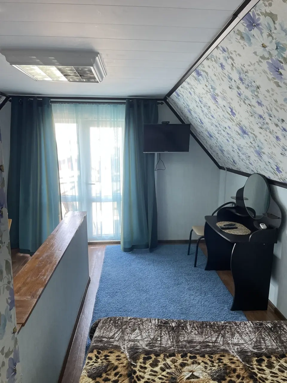 Однокомнатный четырёхместный номер, находится на первом этаже, имеется отдельный выход и собственная терасса, в трех метрах от канала, возможно рыбалка. Все удобства в номере.