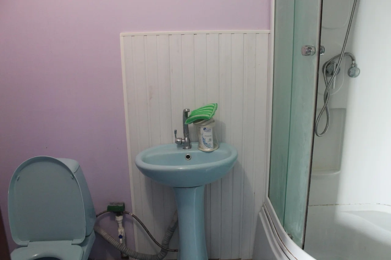 3 местный номер с ванной комнатой и холодильником (2 окна напротив друг друга хорошо продуваемый номер ).общая кухня в Вашем распоряжении. Без кондиционера.