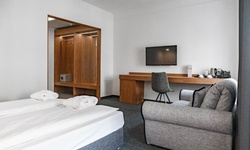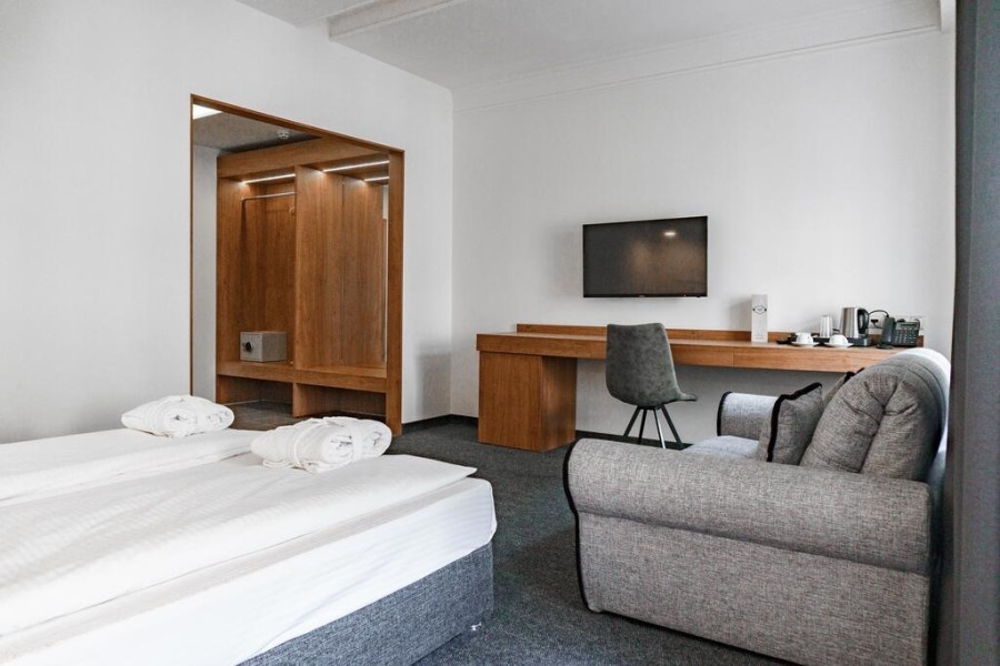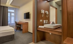 Трёхместный полулюкс вполне комфортный для проживания. Отличное расположение,комфортная чистая постель,уборка, вежливый персонал.