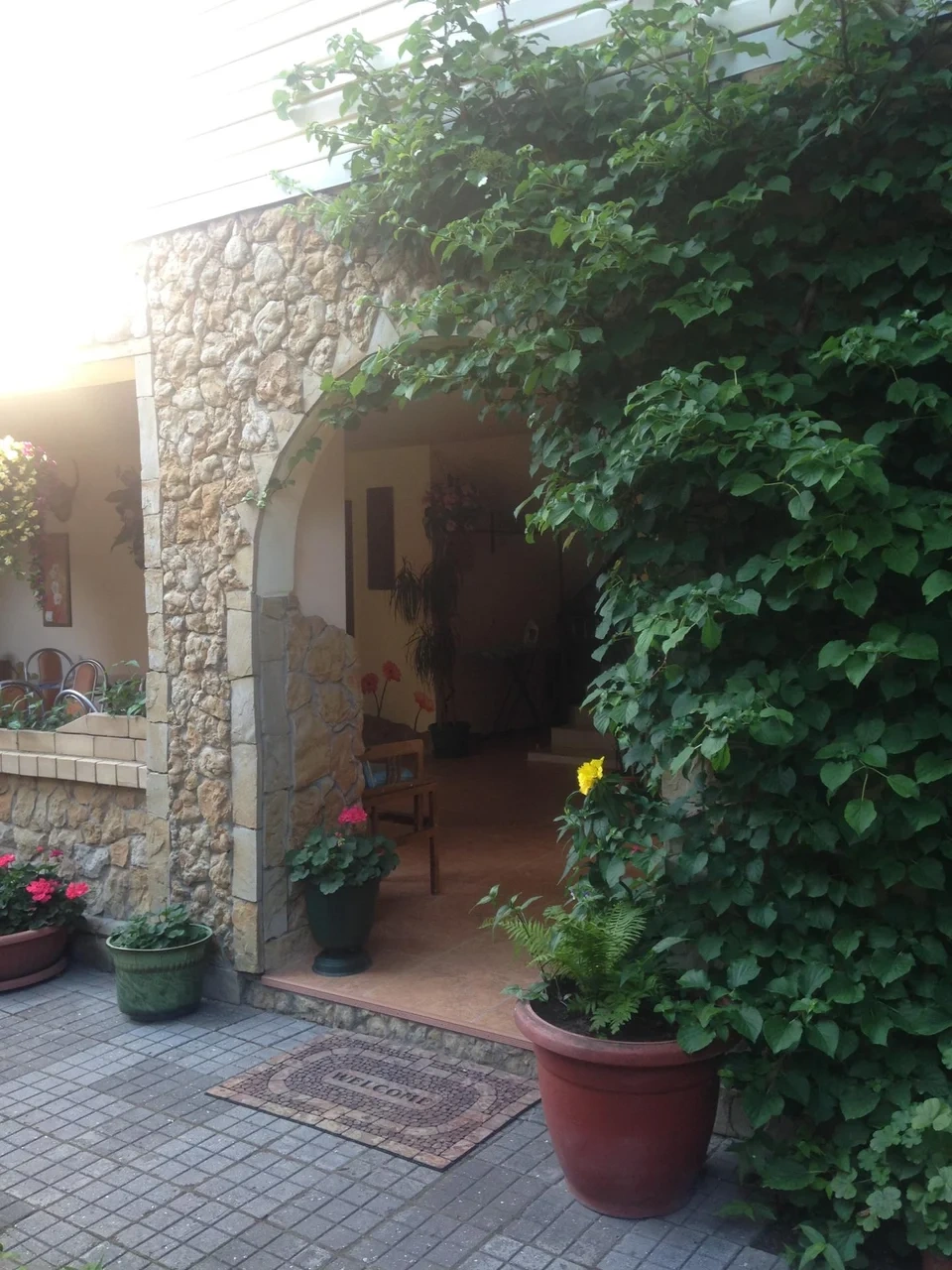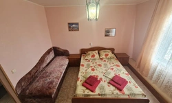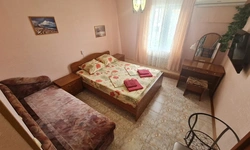 Гостевой дом находится в 550 метрах от моря. Есть двух-, трех-, четырехместные номера с удобствами в номере и категории "люкс". Во всех номерах есть телевизор, , кондиционер, холодильник, бесплатный доступ к интернету Wi-Fi. На территории имеется большой цветущий двор, общая кухня, детская площадка, столики, скамейки, шезлонги, мангал, обеденная зона, утюг, гладильная доска. По желанию организуется 3-х разовое питание, трансфер от/до гостевого дома, услуги такси.