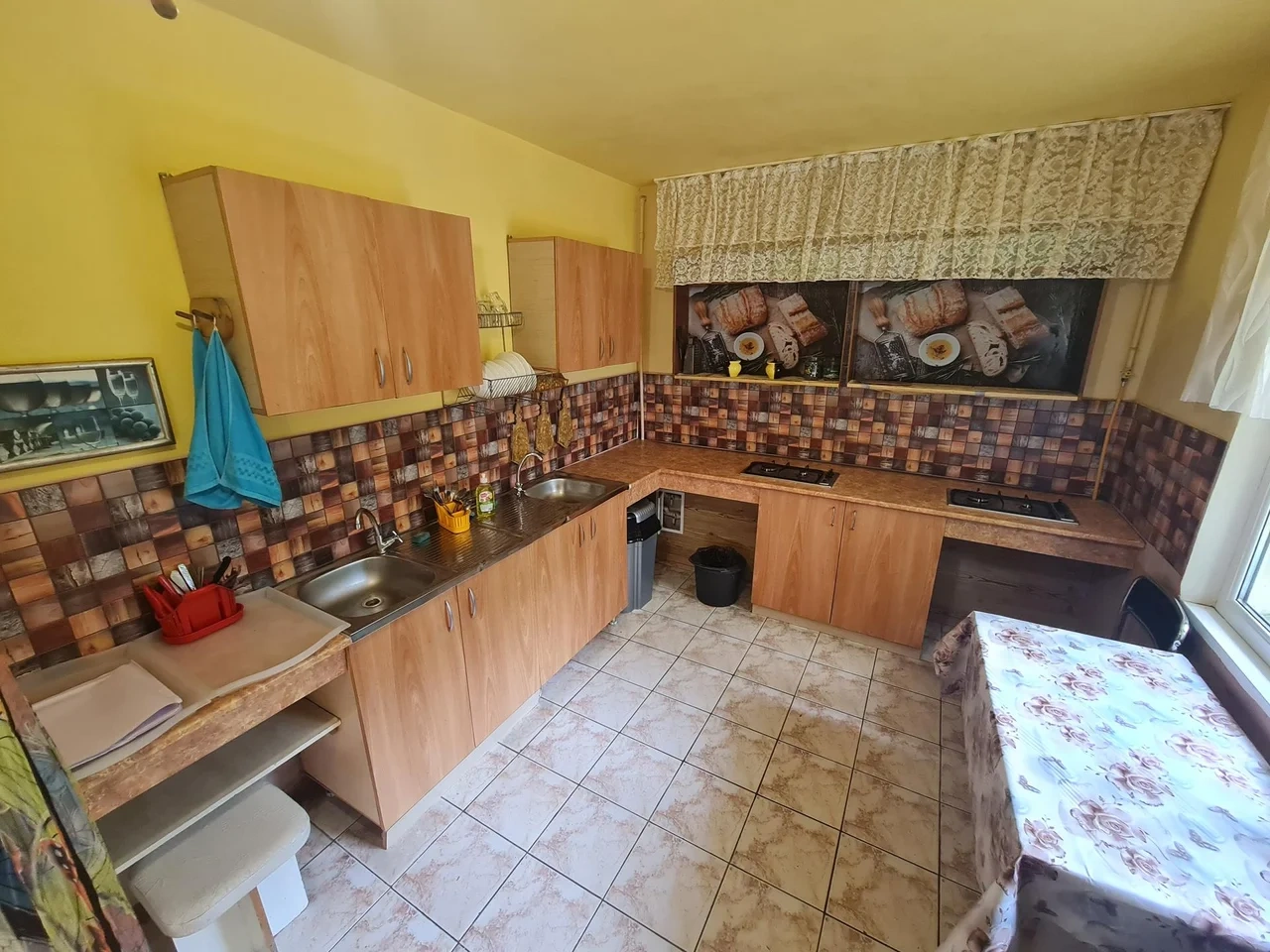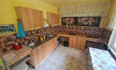 В доме есть общая кухня, много мест, чтобы удобно расположиться и пообедать.
