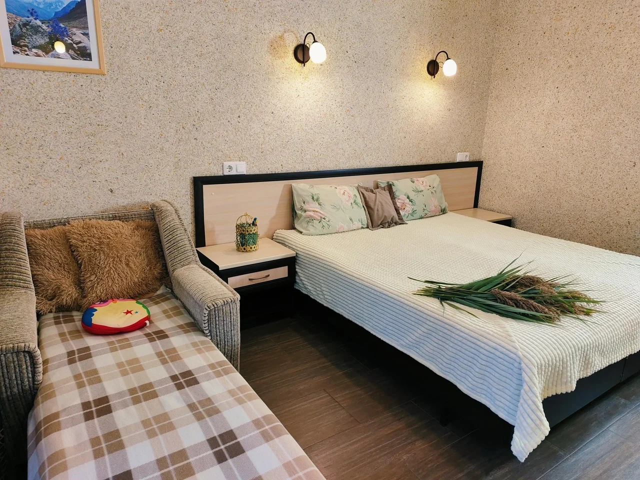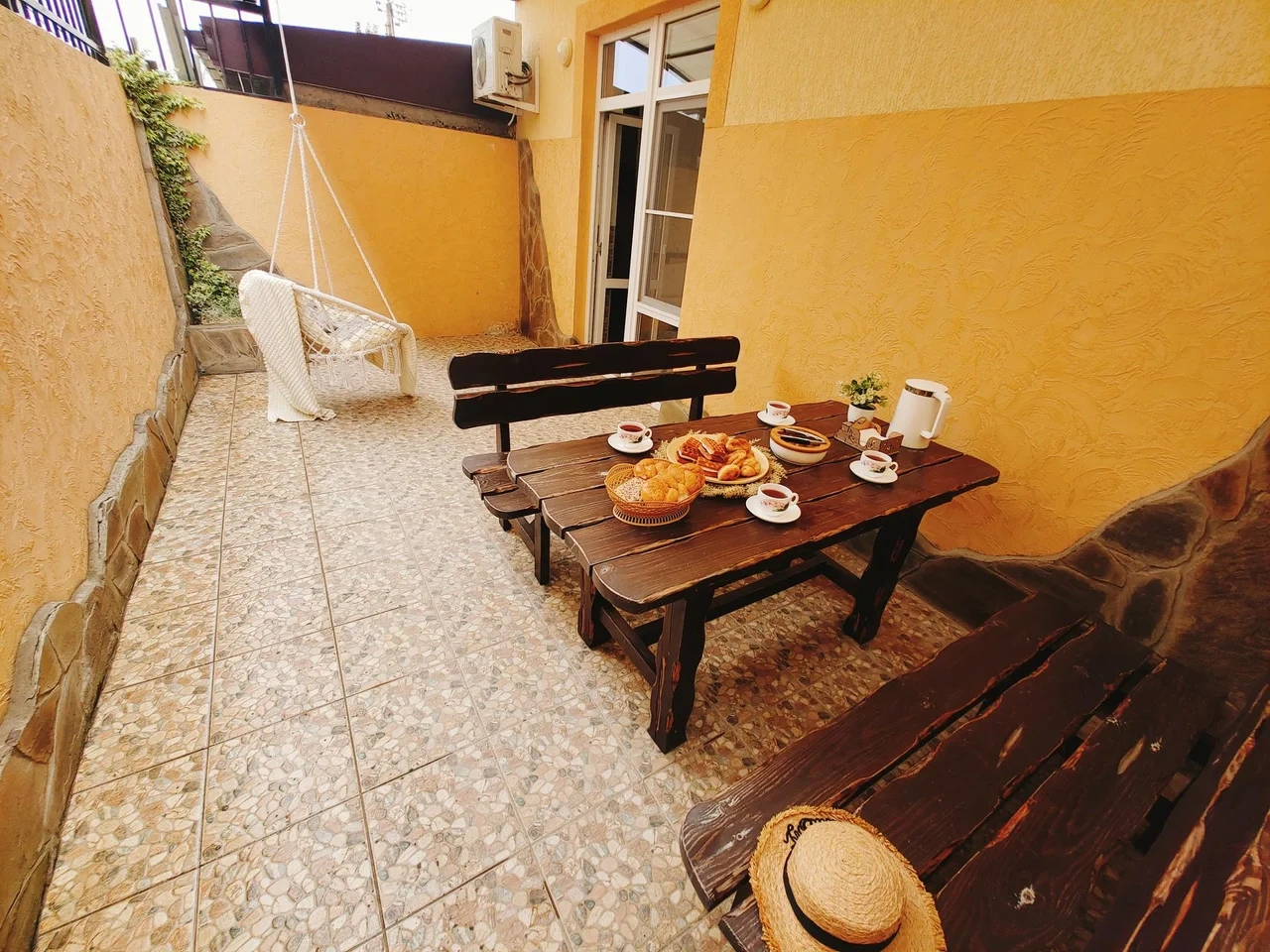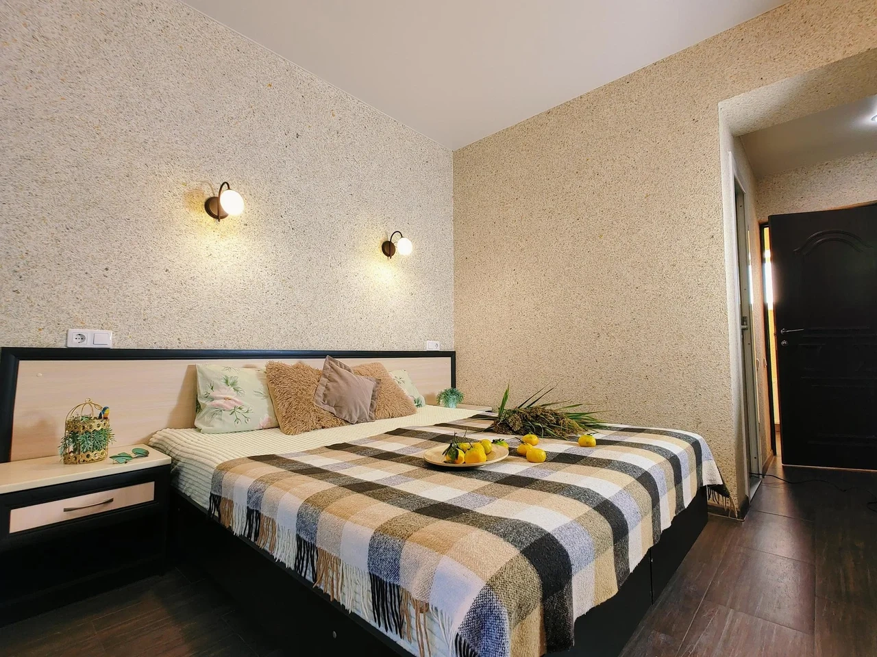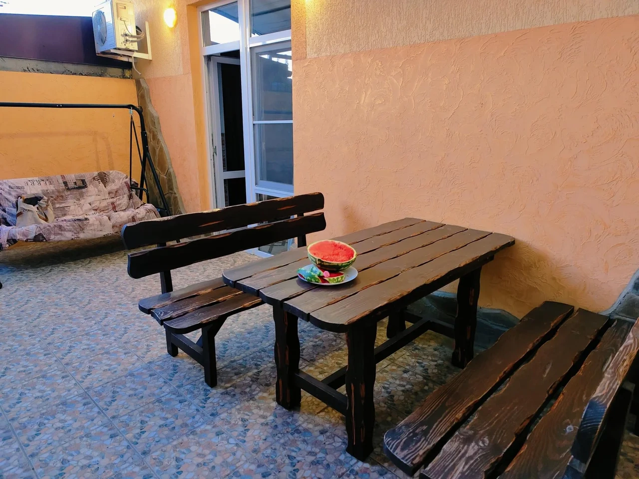 Уютные апартаменты, оснащенные всем необходимым для комфортного отдыха: двуспальная кровать, раскладной двуспальный диван (120х200), кресло-кровать, журнальный столик, шкаф, ТВ, кондиционер. Кухня - обеденная зона, плита, холодильник, микроволновая печь, чайник, посуда. Ванная комната с душевой кабинкой, ванной, стиральной машинкой. Есть собственный дворик с мебелью для отдыха.