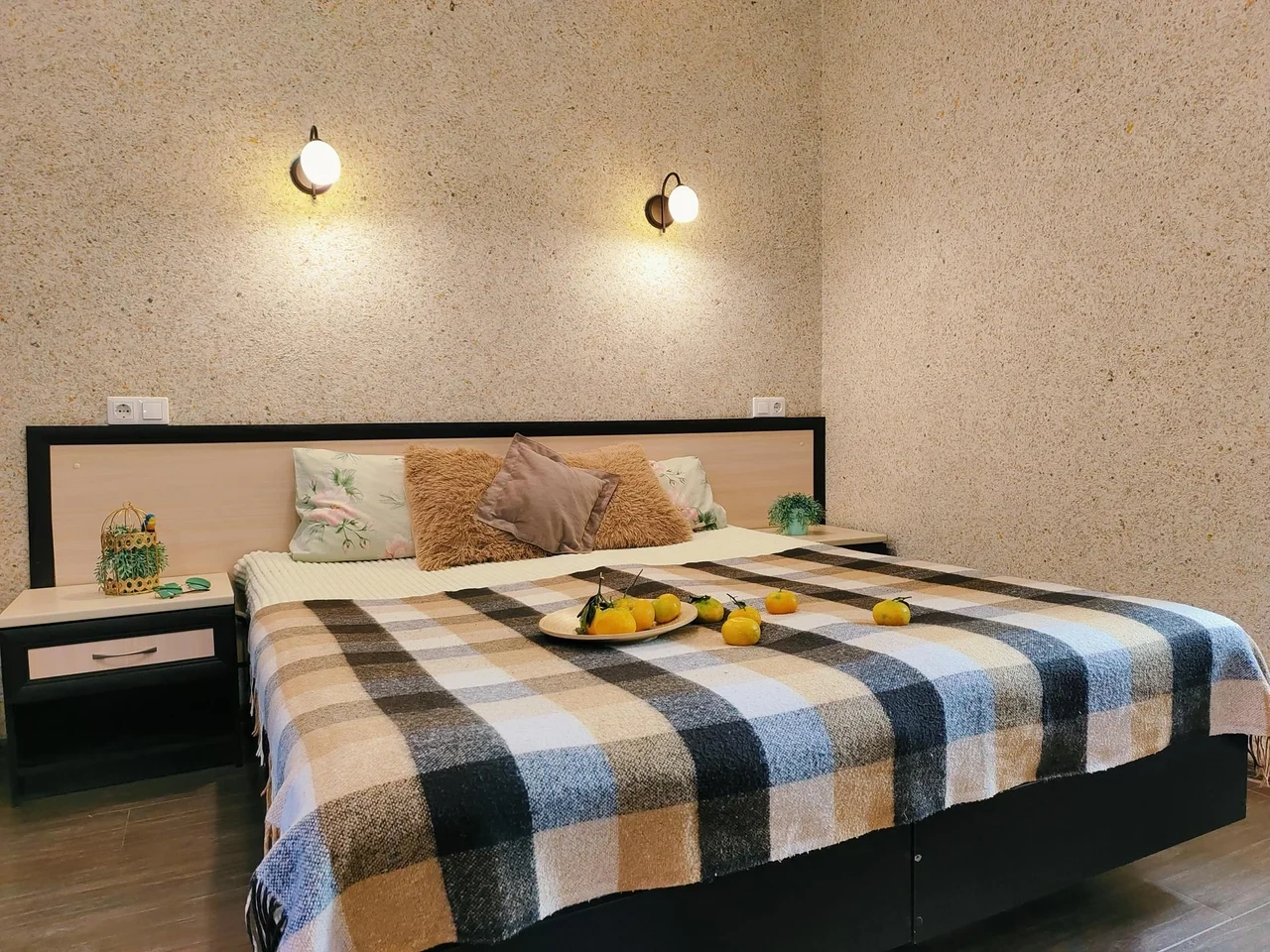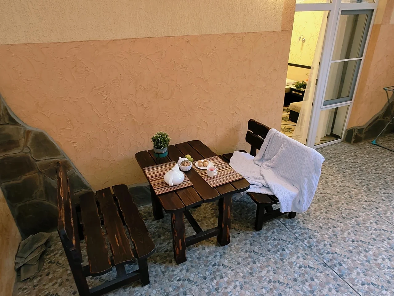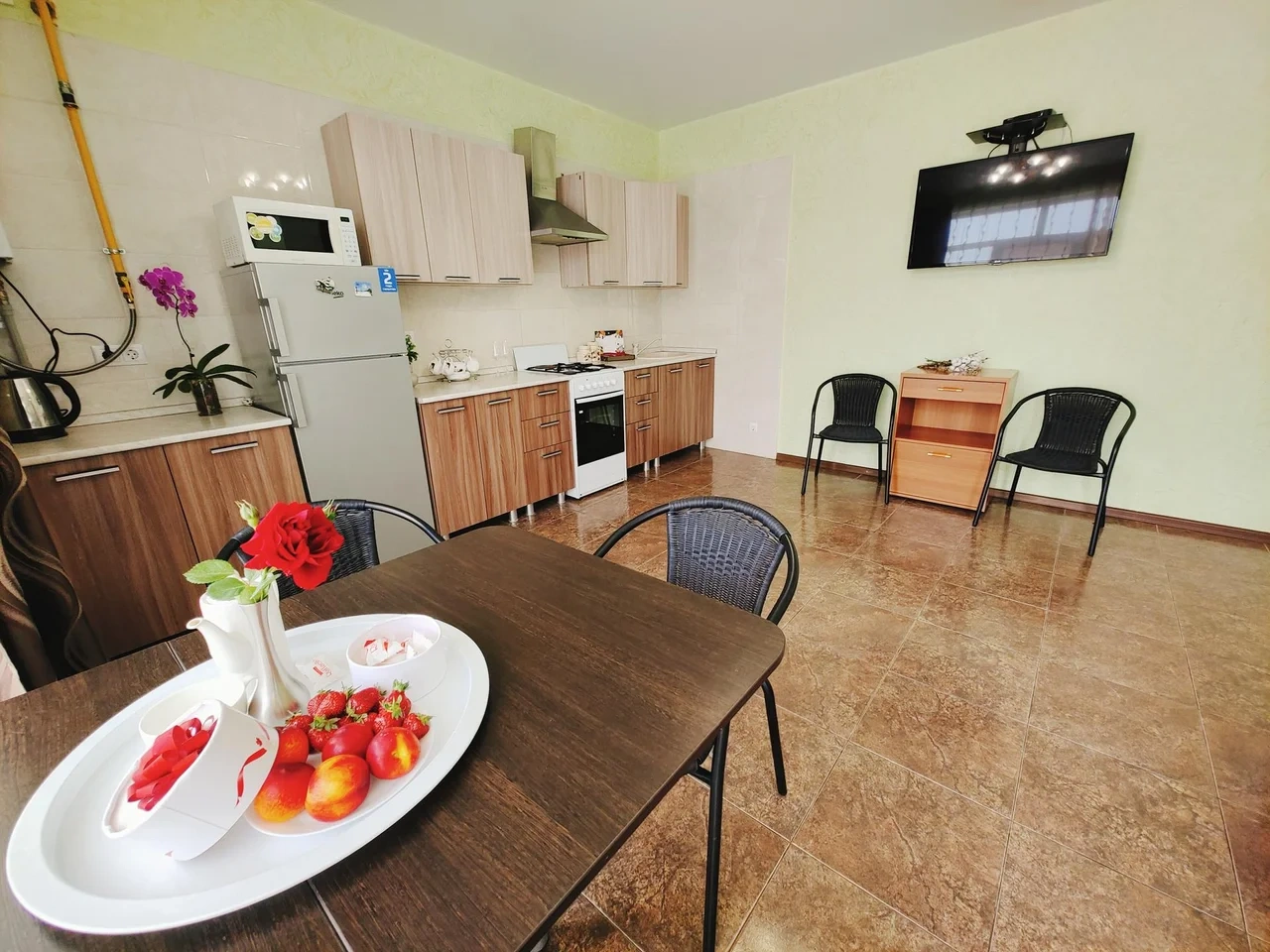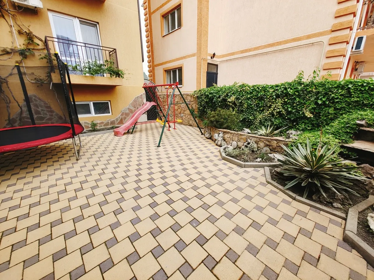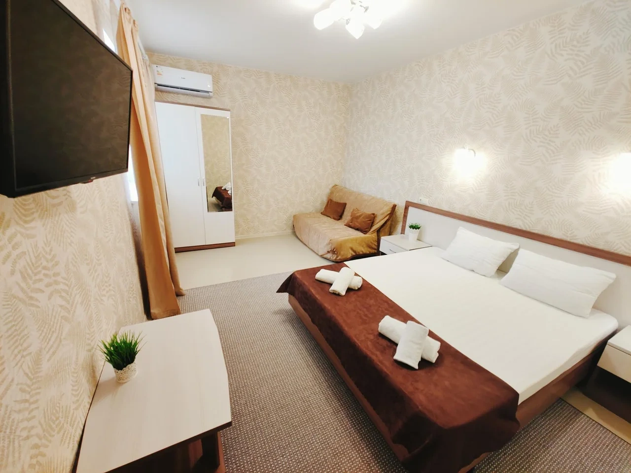 Уютные апартаменты, оснащенные всем необходимым для комфортного отдыха: двуспальная кровать, раскладной двуспальный диван (120х200), кресло-кровать, журнальный столик, шкаф, ТВ, кондиционер. Кухня - обеденная зона, плита, холодильник, микроволновая печь, чайник, посуда. Ванная комната с душевой кабинкой, ванной, стиральной машинкой. Есть собственный дворик с мебелью для отдыха.