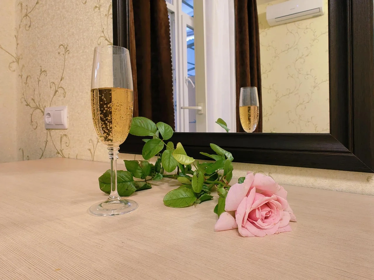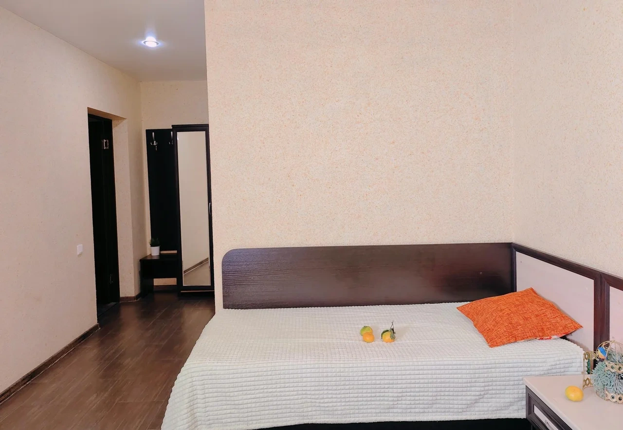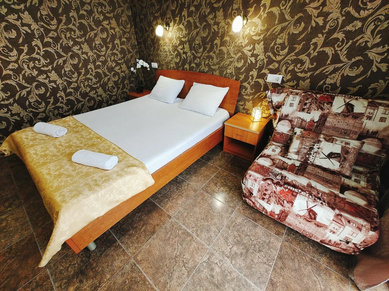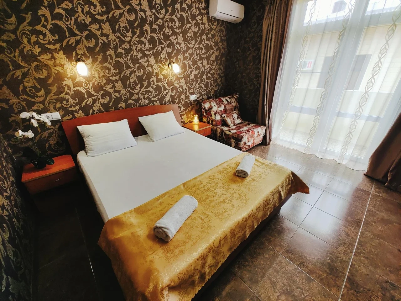 Просторный номер с двуспальной кроватью, прикроватной тумбочкой, туалетным столиком, вешалкой, шкафом. Для вашего комфорта номер оснащен кондиционером, мини-холодильником, телевизором. В номере своя ванная комната с душевой кабинкой, балкон.