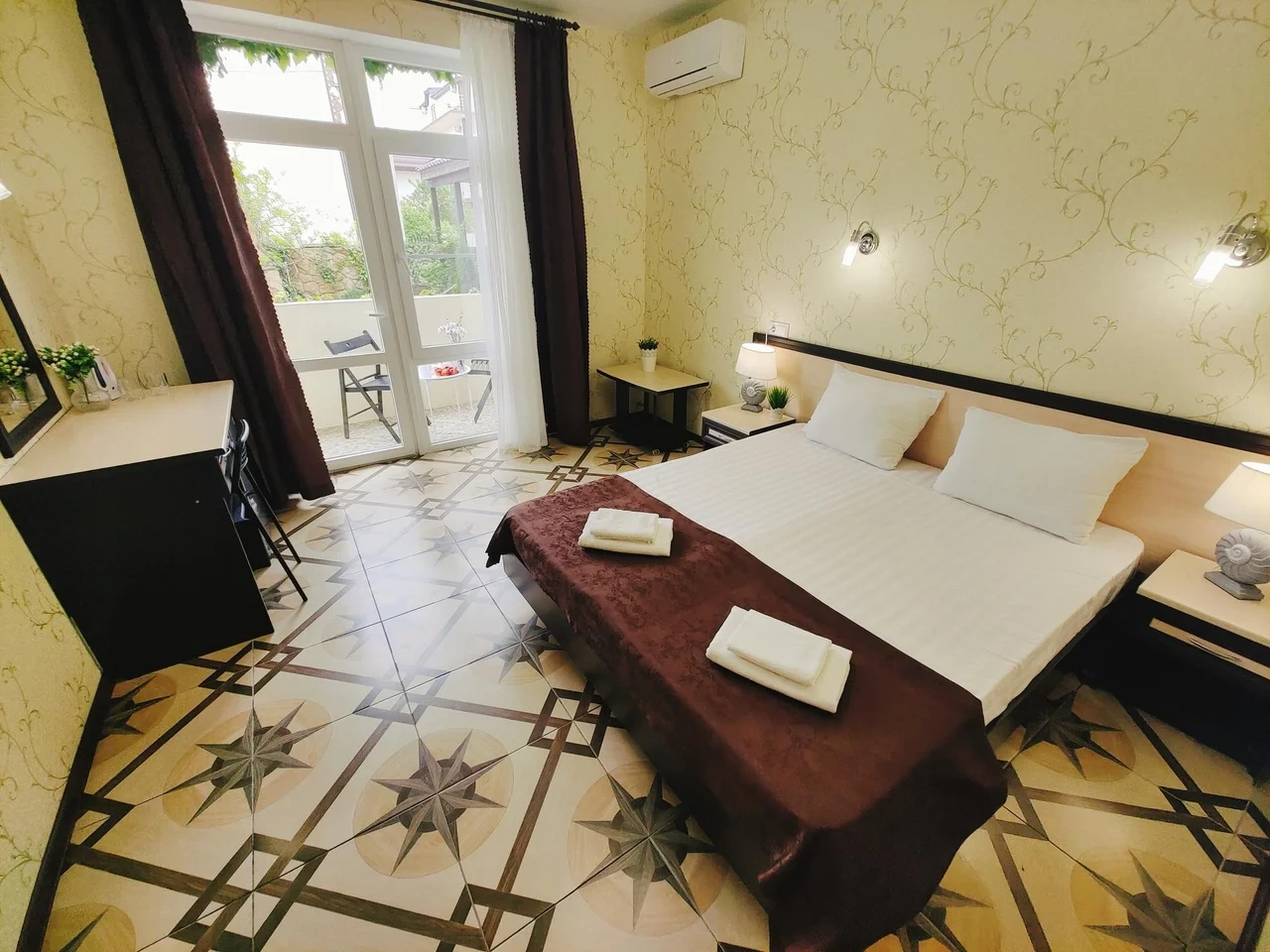 Для Вашего удобства, мы объединили два корпуса. И теперь Гостевой дом состоит из 2-х корпусов - Наутилус (ул.Шембелиди, 10) и Корвет (ул.Шембелиди, 9), (которые разделяются только дорогой). Каждый из корпусов имеет свою изюминку. На территории корпуса Наутилус (номера категории комфорт, полу-люкс) расположен большой бассейн с подогревом, мангальная зона, столовая, а на территории корпуса Корвет (номера категории стандарт)— общая кухня, батут, горки для детей. И для Вас доступна территория и преимущества обоих корпусов.