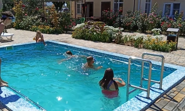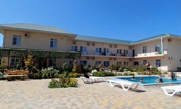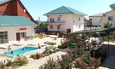 Семейный тихий (избегаем шумных компаний) гостевой дом "СУЛТАН " расположен на берегу Азовского моря, есть номера , трёх, четырех и пятиместные. Есть два бассейна. Один на открытом воздухе другой, в три раза больше - крытый. Оба бассейна с подогревом. Мангальная зона, детские площадки, стоянка автомобилей. Общая кухня и столовая. Каждый номер оборудован сплит системой, телевизором, холодильником. Есть wi-fi.