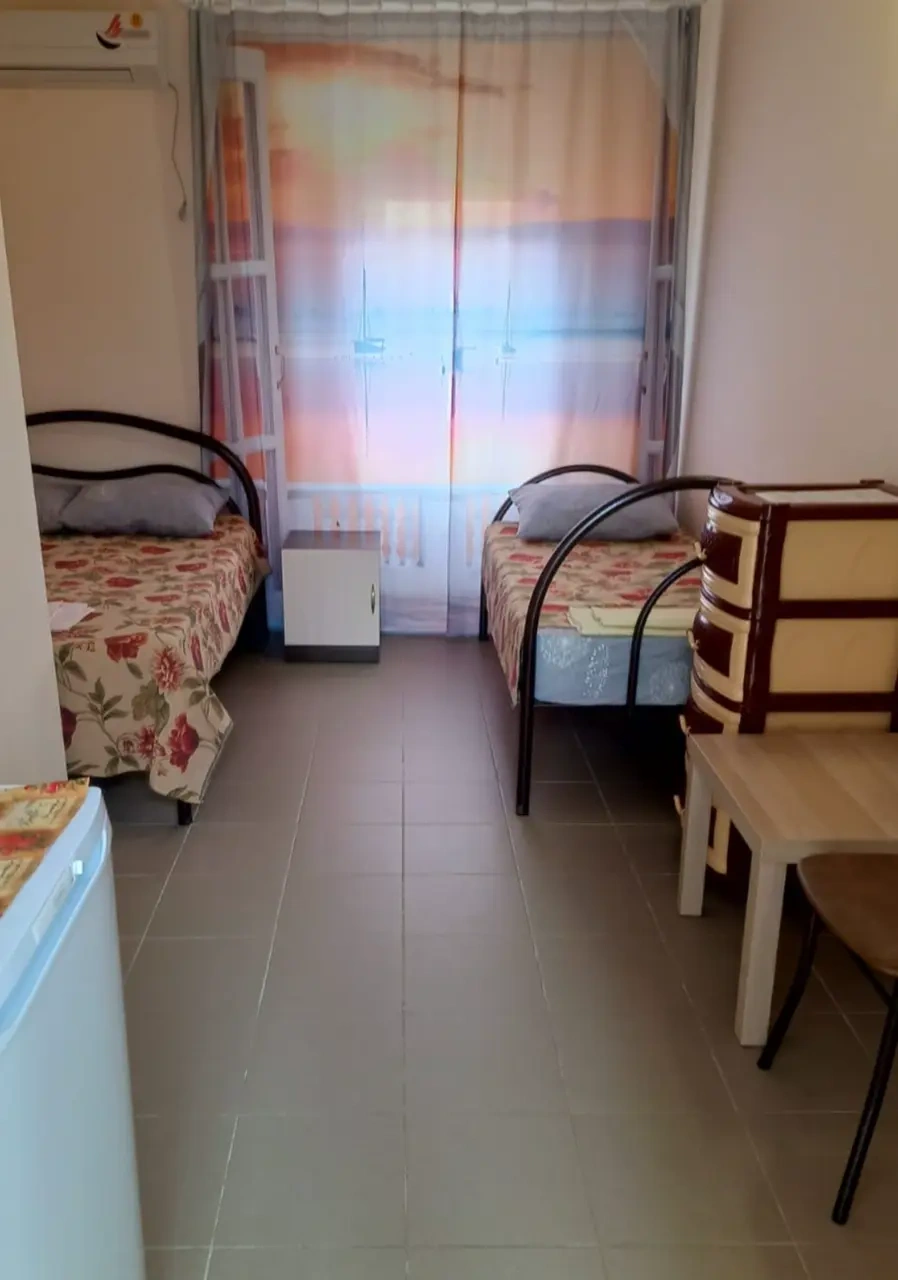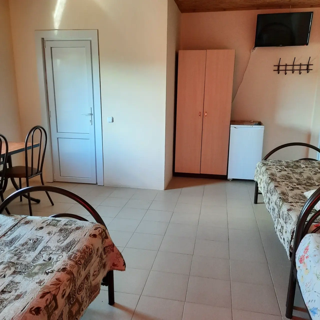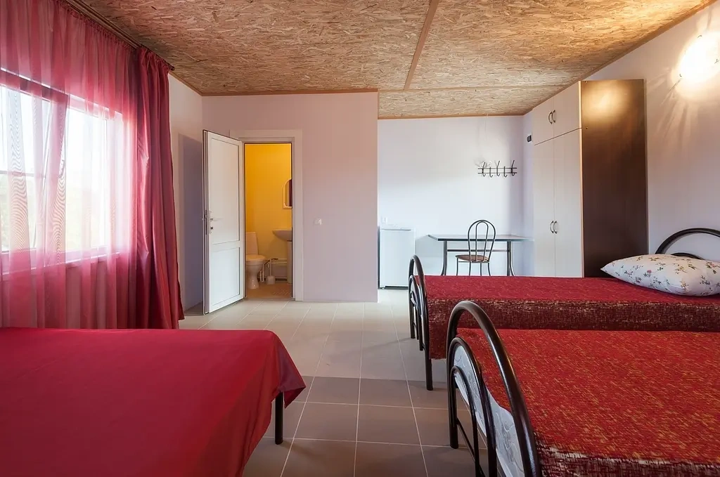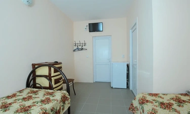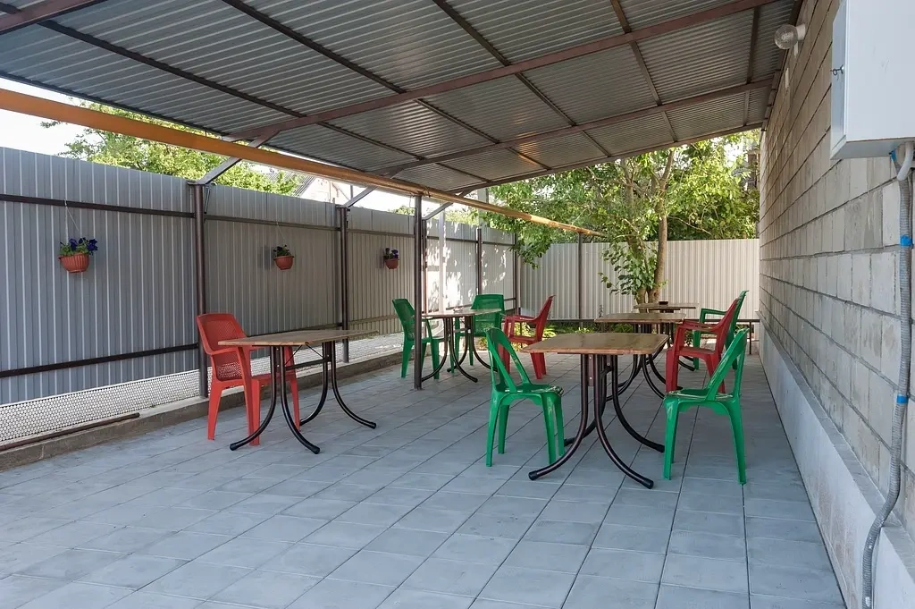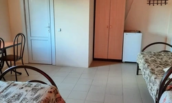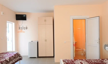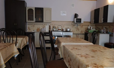 Частный дом находится на первой улице от моря, в 2-х минутах ходьбы от спуска на центральный пляж поселка Кучугуры. Проехать к дому очень просто — по Гагарина до Приморской и направо. Вам будут предложены комнаты с удобствами на 2, 3, 4 человека, расположенные в двухэтажном доме. В каждой комнате свой санузел (душ, умывальник, туалет), одно- и двуспальные кровати, шкаф, тумбочки, холодильник, телевизор ( цифровое тв. 20 каналов), сплит-система(холод). Для полноценной естественной вентиляции на противоположной от входа стороне есть окно с маскитной сеткой. Холодная и горячая вода подается без перебоев. Для самостоятельного приготовления и приема пищи предоставляется просторная кухня - столовая, оборудованная всем необходимым. Две газовых плиты, две мойки, микроволновая печь, посуда, 5 обеденных столов. Рядом с кухней находится навес с 6 столами где можно покушать, отдохнуть, пообщаться с друзьями.