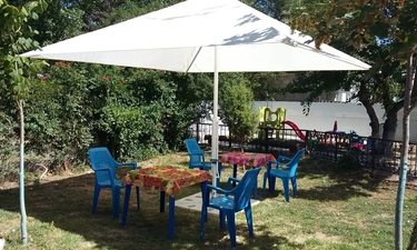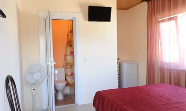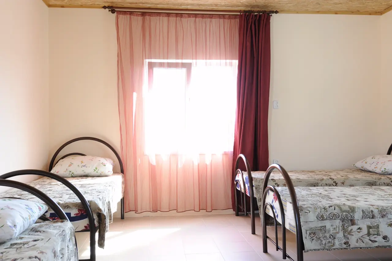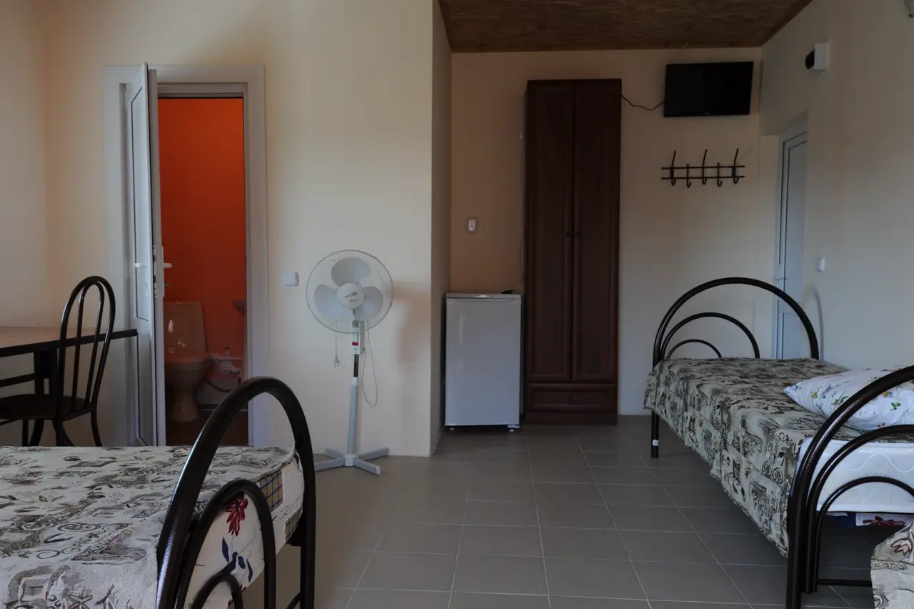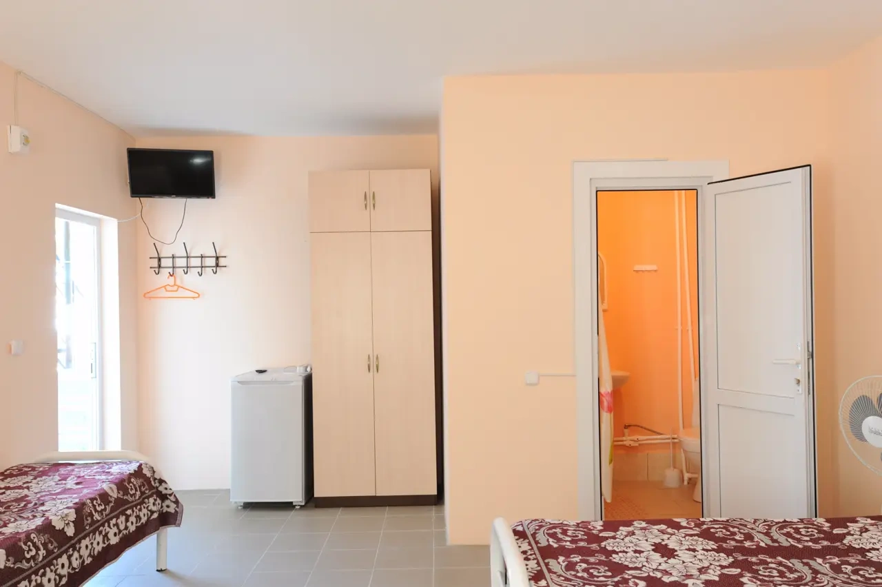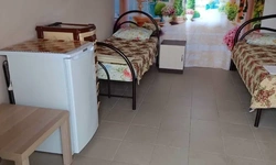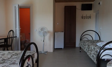 Частный дом находится на первой улице от моря, в 2-х минутах ходьбы от спуска на центральный пляж поселка Кучугуры. Проехать к дому очень просто — по Гагарина до Приморской и направо. Вам будут предложены комнаты с удобствами на 2, 3, 4 человека, расположенные в двухэтажном доме. В каждой комнате свой санузел (душ, умывальник, туалет), одно- и двуспальные кровати, шкаф, тумбочки, холодильник, телевизор ( цифровое тв. 20 каналов), сплит-система(холод). Для полноценной естественной вентиляции на противоположной от входа стороне есть окно с маскитной сеткой. Холодная и горячая вода подается без перебоев. Для самостоятельного приготовления и приема пищи предоставляется просторная кухня - столовая, оборудованная всем необходимым. Две газовых плиты, две мойки, микроволновая печь, посуда, 5 обеденных столов. Рядом с кухней находится навес с 6 столами где можно покушать, отдохнуть, пообщаться с друзьями.