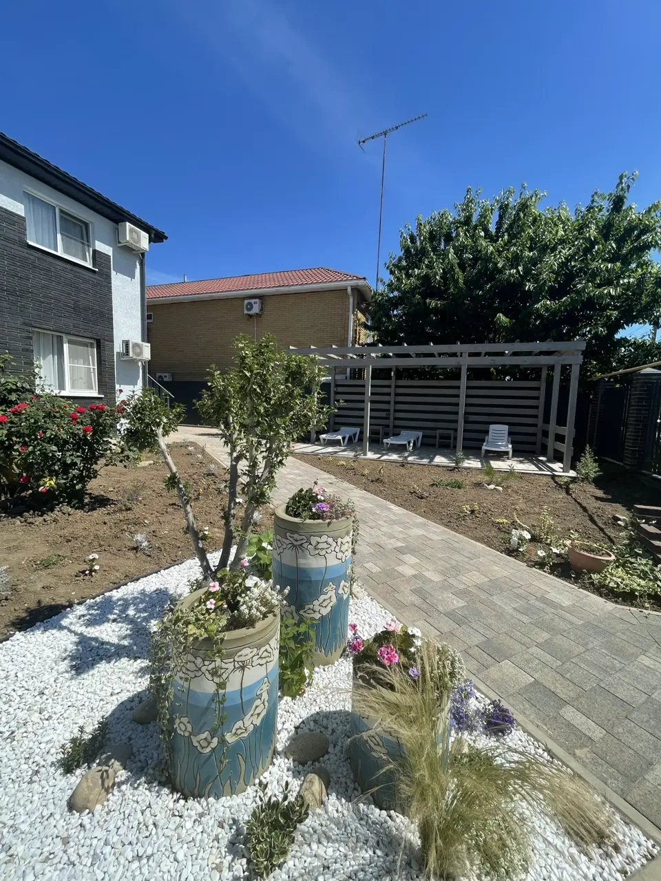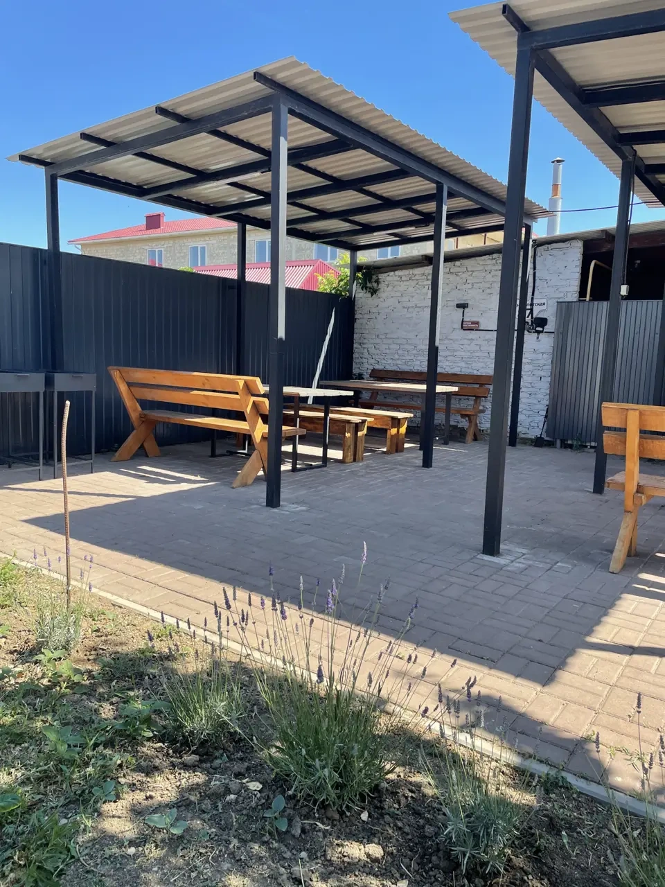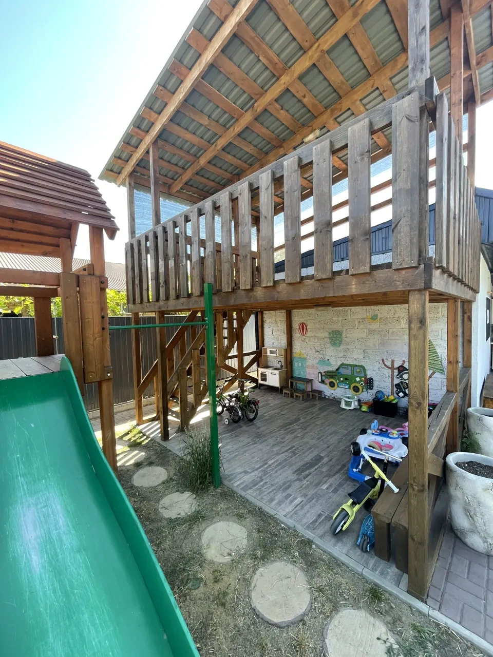 Территория гостевого дома «СОЛНЦЕ» закрытая, внутри расположена детская площадка, площадка для малышей и подростков, батут. Есть беседки для отдыха, мангальная зона, настольные игры, книги, велосипеды, самокаты. Парковочные места у гостиницы, бесплатно.