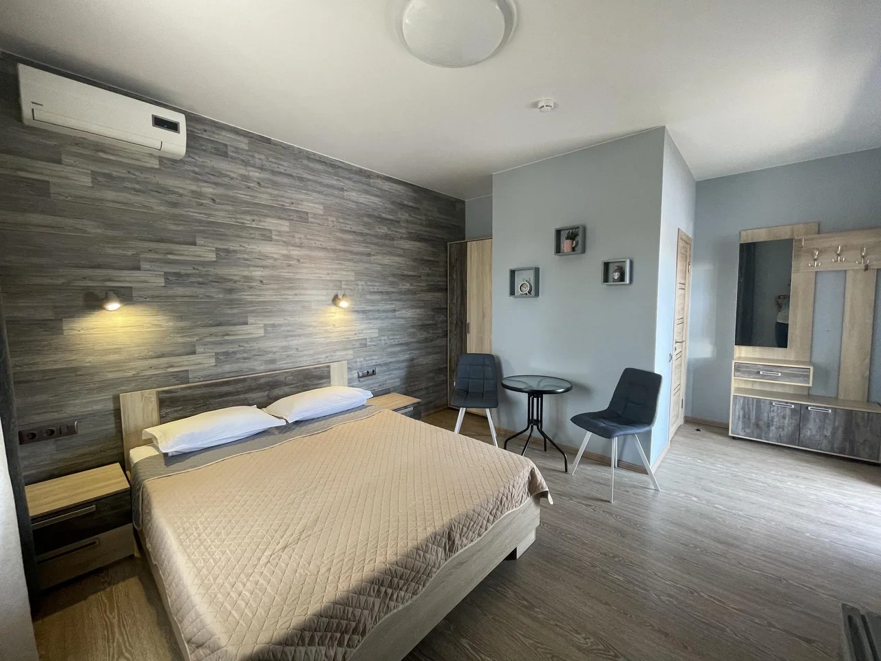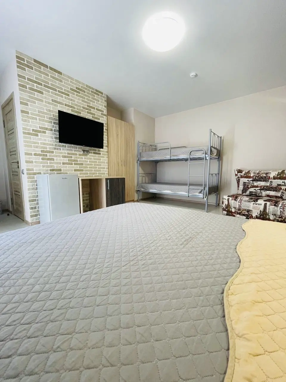 В нашем гостевом доме есть номера как для больших семей, так и для любителей уединенного отдыха. В каждом номере имеется кондиционер, ЖК телевизор, холодильник, платяной шкаф, душевая комната и туалет. В номерах, расположенных на втором этаже, есть балкон. Тщательно подобранный современный интерьер создаёт атмосферу уюта и комфорта для беспечного отдыха.