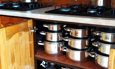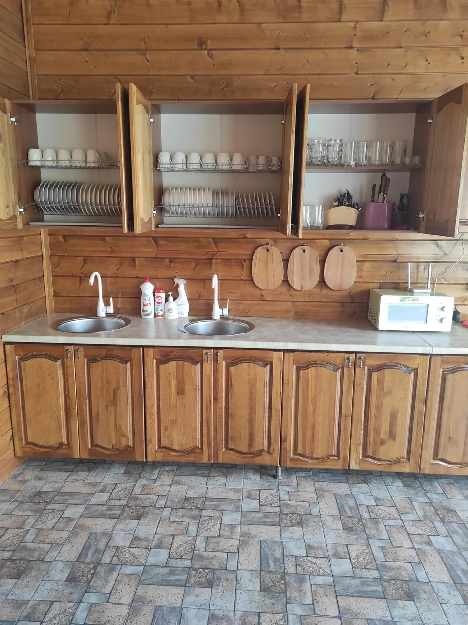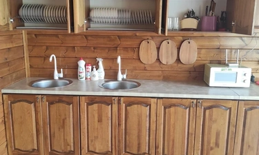 Для приготовления пищи на территории гостевого дома "Вояж" имеется общая кухня с приятным интерьером, укомплектованная всеми необходимыми приборами и посудой! Так же в шаговой доступности имеются столовые, кафе, рестораны с вкусной, разнообразной пищей на любой вкус.