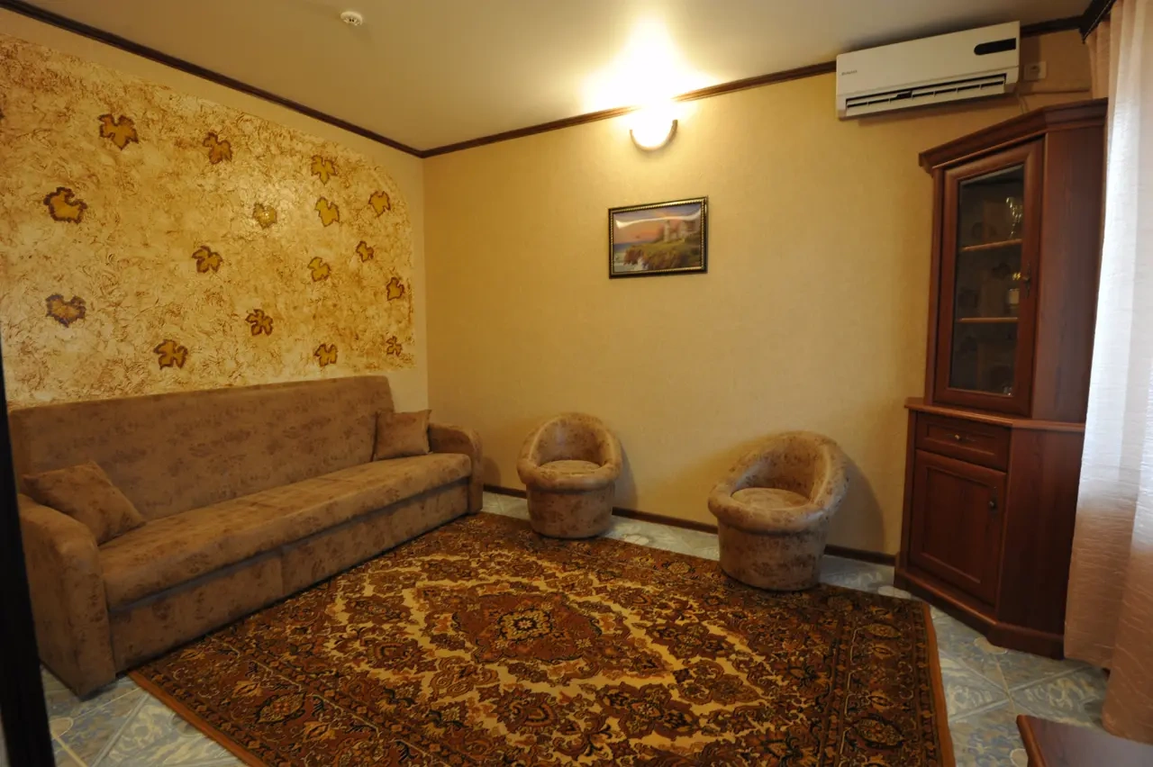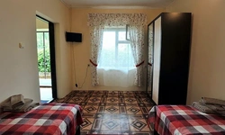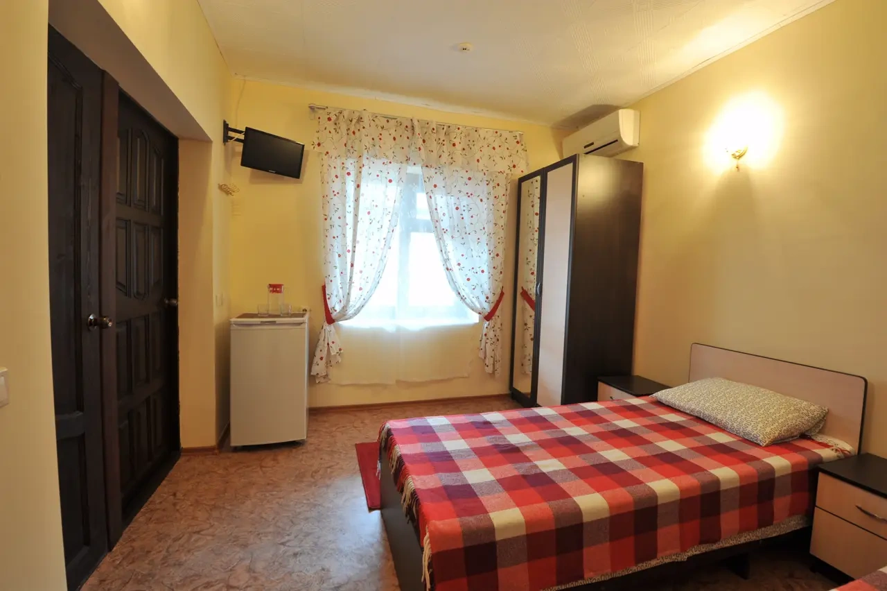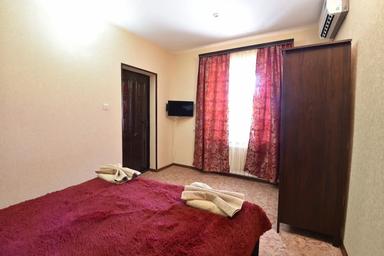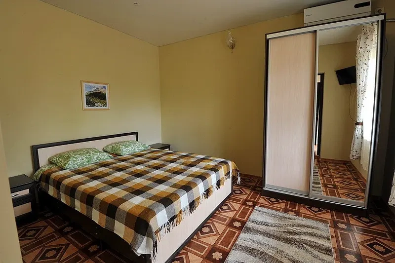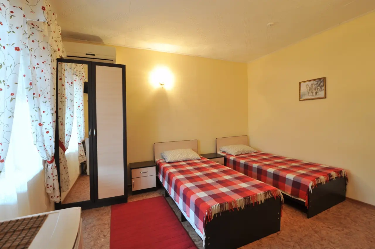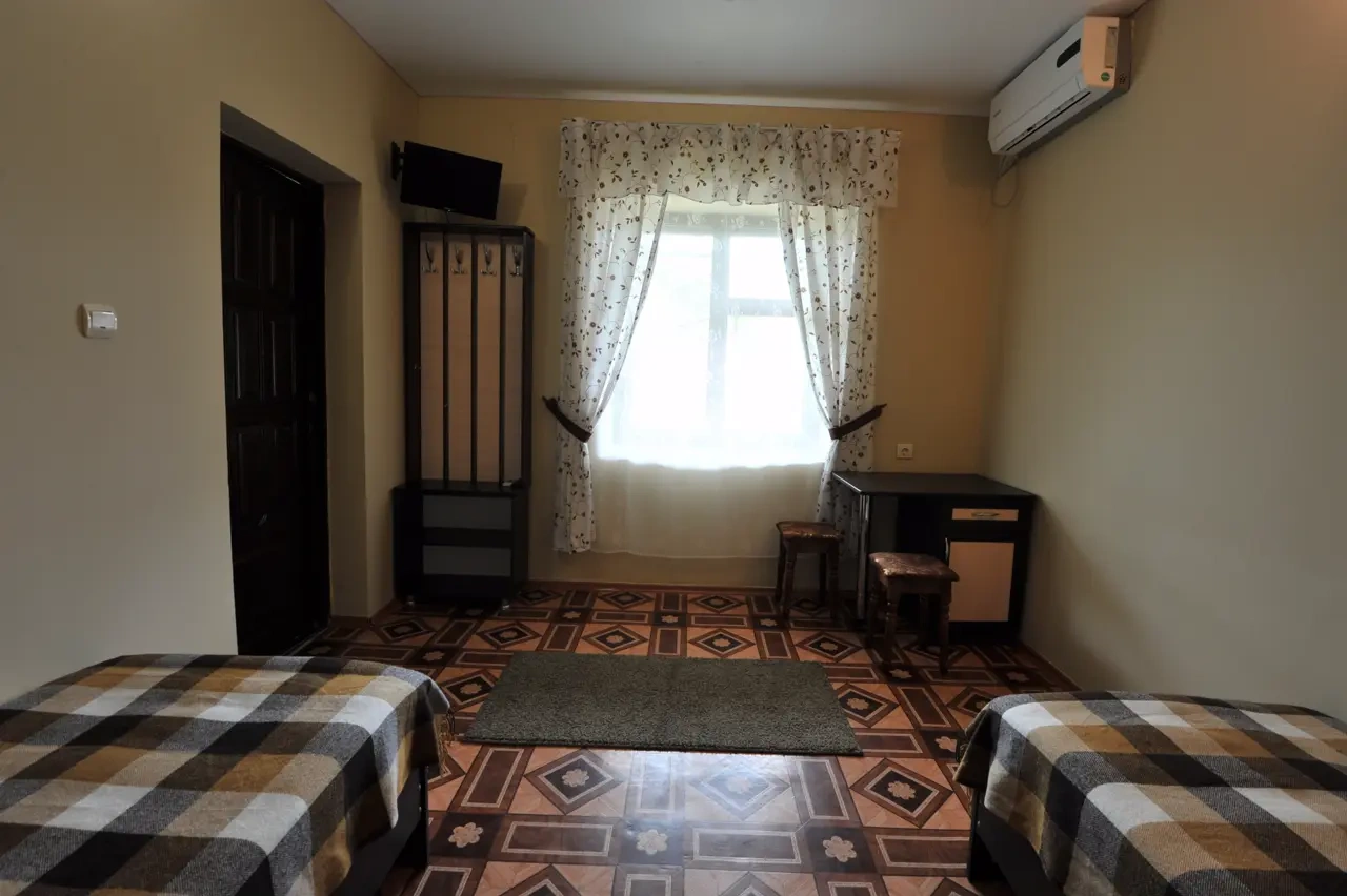 Гостевой дом находится вдали от шумных развлечений и оживленных трасс. Гостевой дом― это одноэтажное здание, в котором расположены: один двухкомнатный номер люкс ; двухкомнатные четырехместные номера категории «Семейный»; двухместные (возможна установка доп.места) однокомнатные номера ― категории "Стандарт -комфорт" . Все номера оснащены: кондиционерами, холодильниками, сейфами, душем в каждом номере, с/у, полотенце-сушителем; На довольно большой территории гостевого дома к Вашим услугам: кафе с домашней кухней, детская площадка; водная горка; аэро-хоккей; детские велосипеды, на которых малыши могут кататься по аллеям гостевого дома; сауна; открытый бассейн, где в Вашем распоряжении шезлонги и зонтики; места для отдыха и приготовления блюд на мангале; баня на дровах. Ухоженный двор с разнообразием растений. Здесь другой мир: природы и тишины.