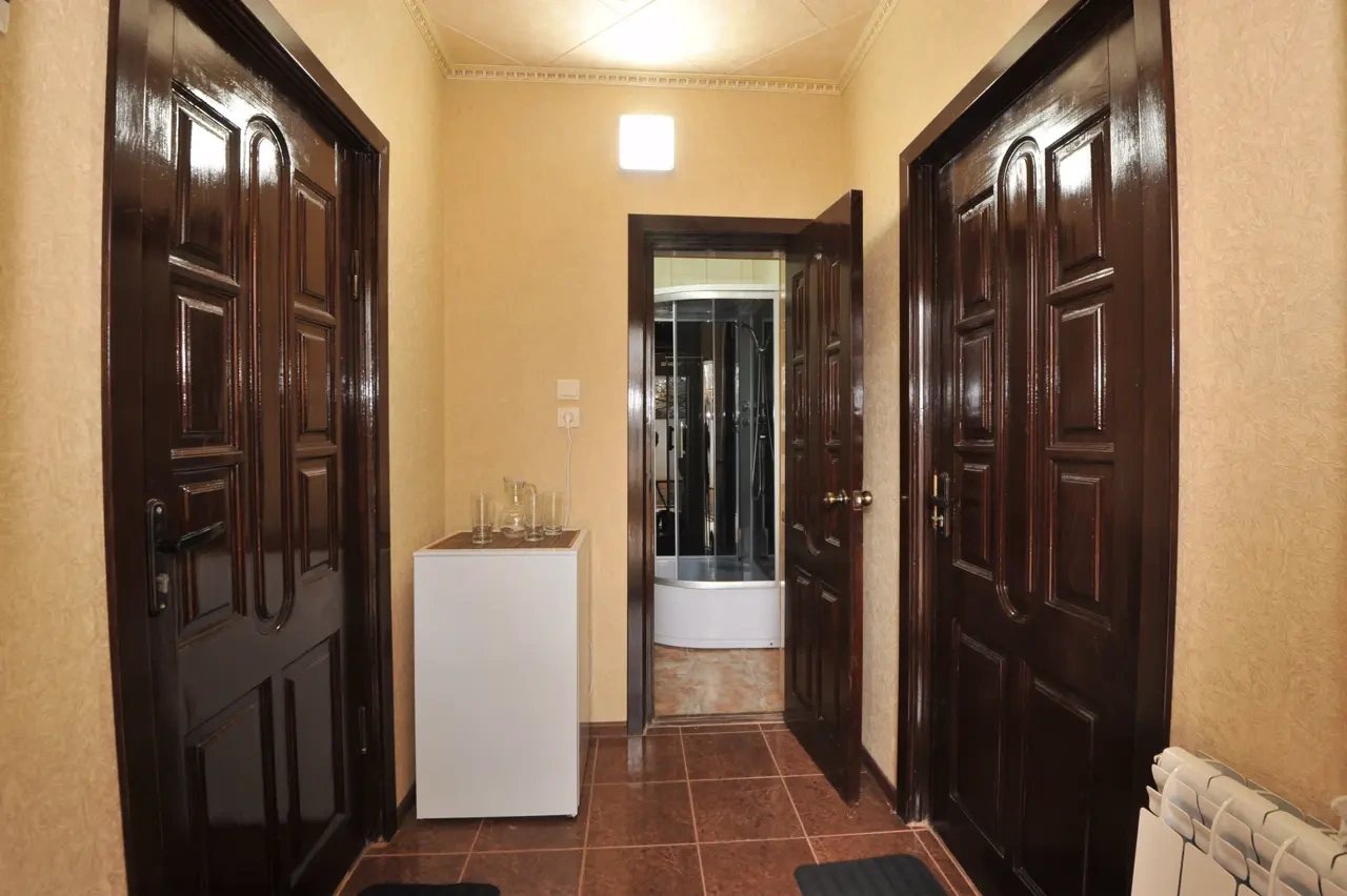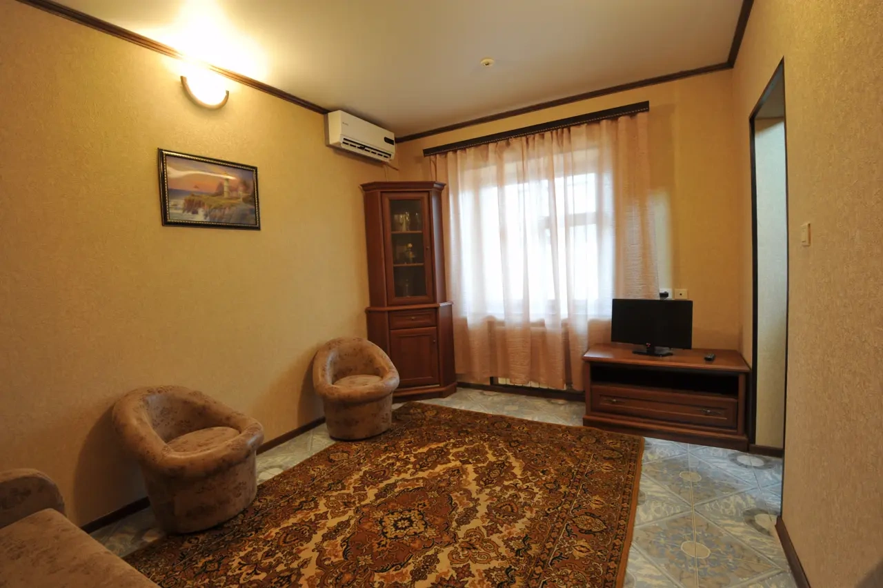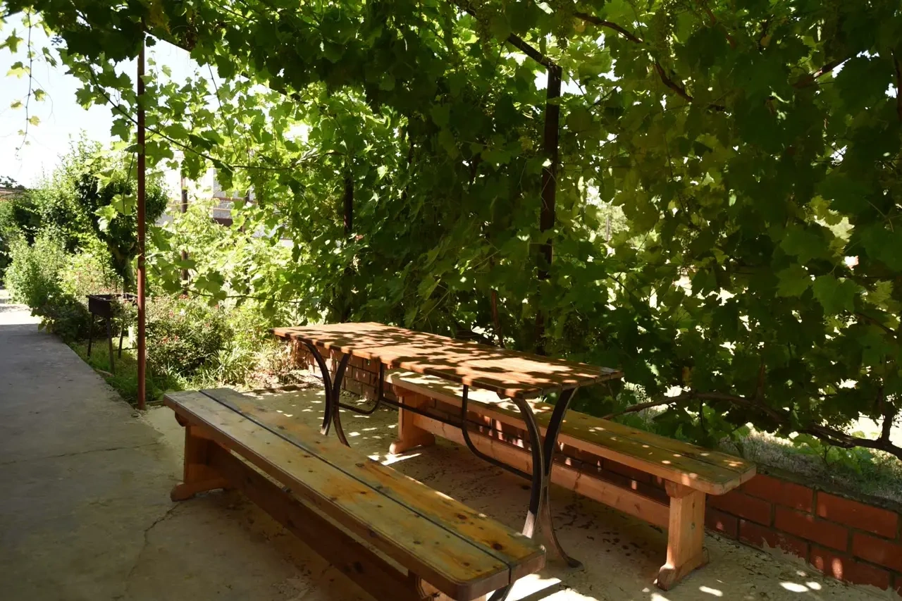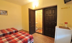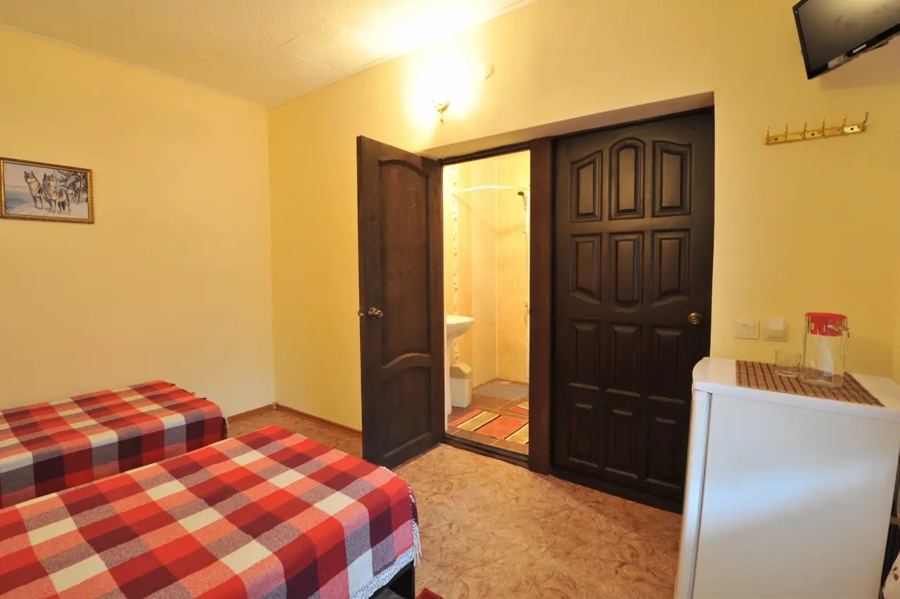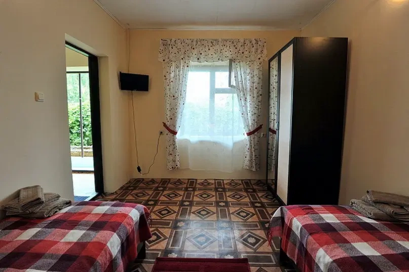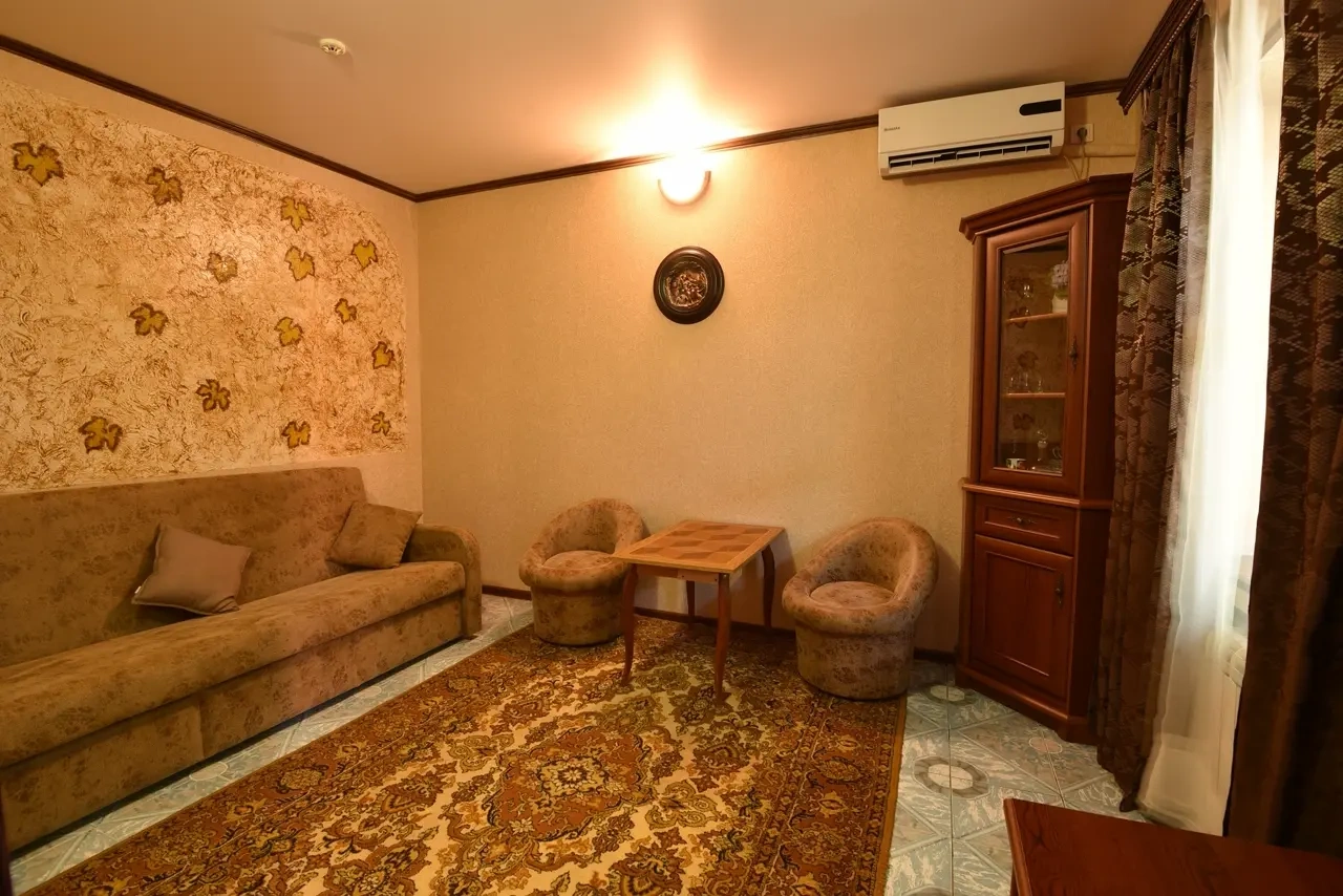 Гостевой дом находится вдали от шумных развлечений и оживленных трасс. Гостевой дом― это одноэтажное здание, в котором расположены: один двухкомнатный номер люкс ; двухкомнатные четырехместные номера категории «Семейный»; двухместные (возможна установка доп.места) однокомнатные номера ― категории "Стандарт -комфорт" . Все номера оснащены: кондиционерами, холодильниками, сейфами, душем в каждом номере, с/у, полотенце-сушителем; На довольно большой территории гостевого дома к Вашим услугам: кафе с домашней кухней, детская площадка; водная горка; аэро-хоккей; детские велосипеды, на которых малыши могут кататься по аллеям гостевого дома; сауна; открытый бассейн, где в Вашем распоряжении шезлонги и зонтики; места для отдыха и приготовления блюд на мангале; баня на дровах. Ухоженный двор с разнообразием растений. Здесь другой мир: природы и тишины.