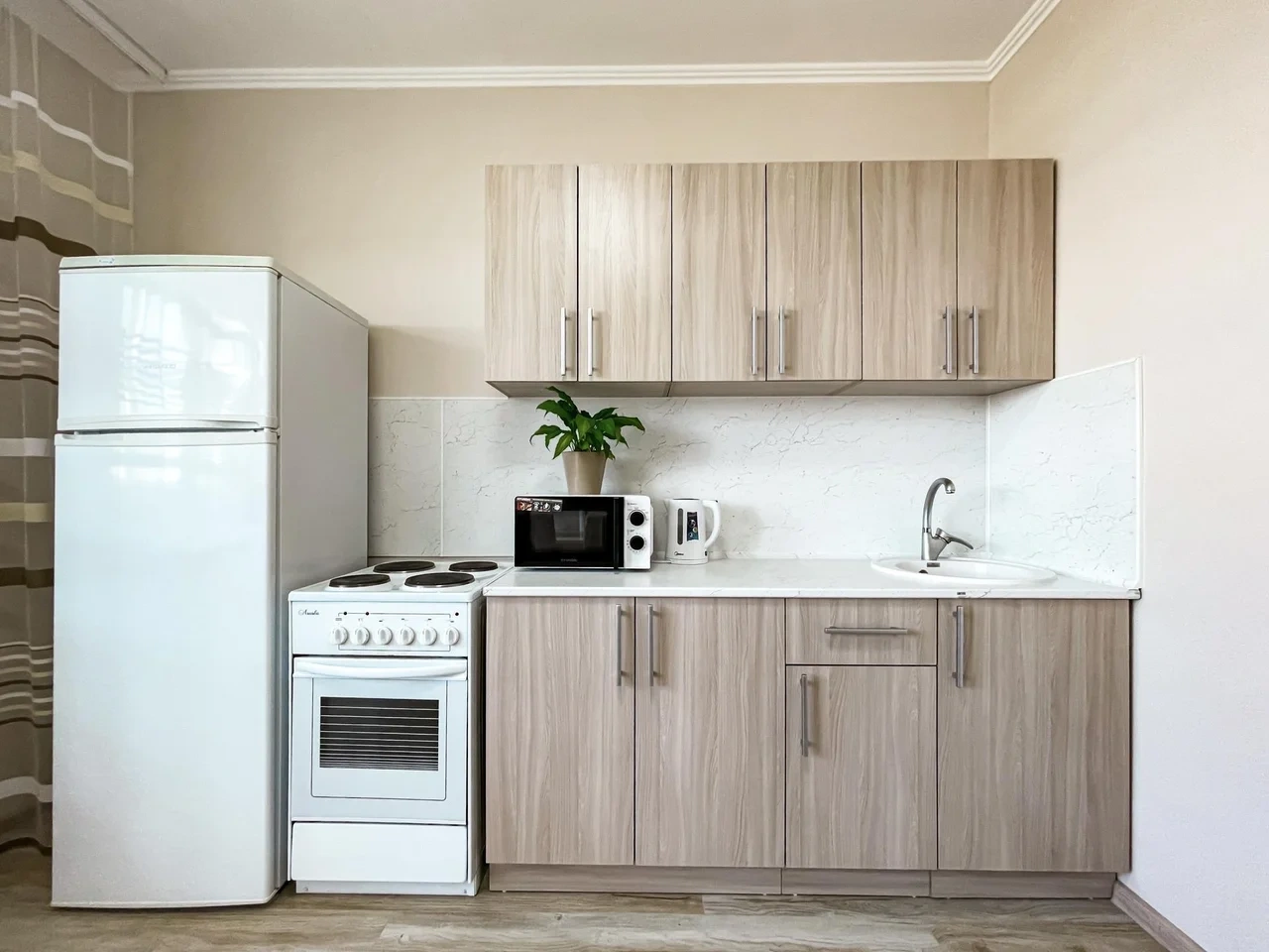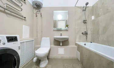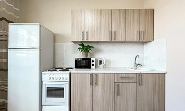 B кваpтире чистота и порядок, включая полностью продезинфицированную сантехнику. В квартире имеется вся необходимая бытовая техника: холодильник, сплит система, Wi-Fi, цифровое ТВ, стиральная машина, утюг, гладильная доска, фен, микроволновка, посуда, электрический чайник, двуспальная кровать.