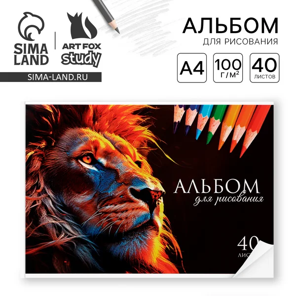 Альбом для рисования 40 листов на склейке А4 «Лев»
