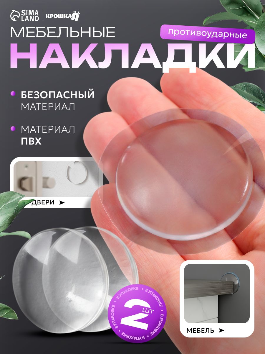 Cиликоновые накладки на мебель / Стоппер для двери, противоударный, 4 см, набор 2 шт