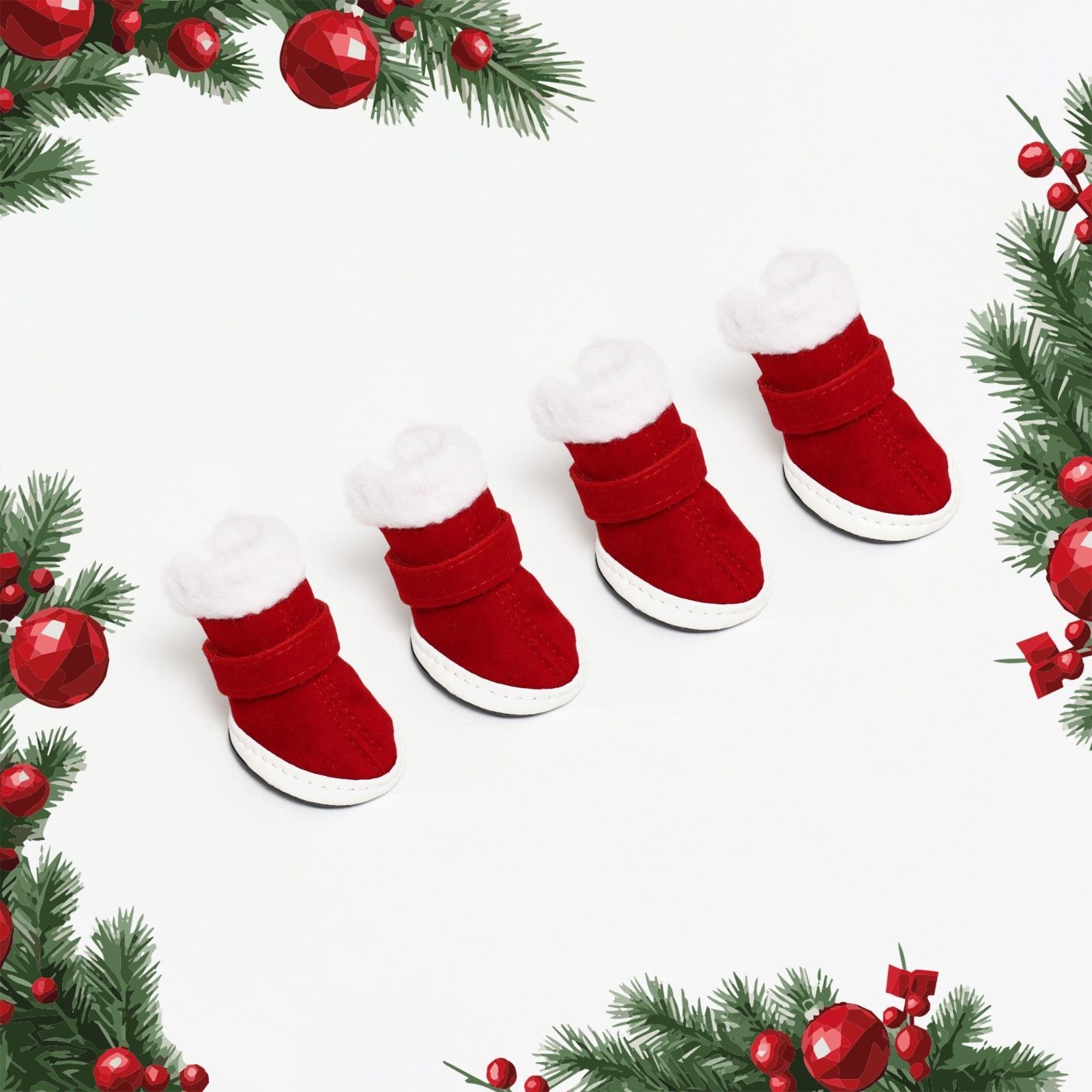 Ботинки для животных"Кристмес", набор 4 шт, размер 5 (подошва 6 х 5 см), красные