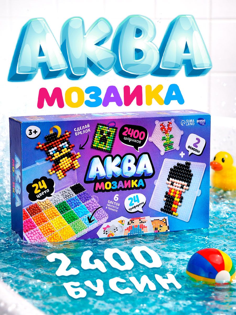 Аквамозаика для детей, "Сделай брелок", 24 трафарета, 2400 шариков / развивающий набор для для детей, подарок для девочек