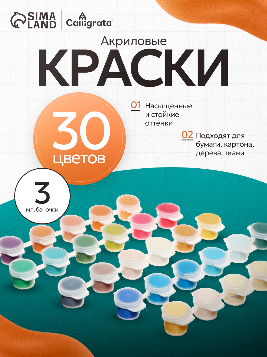 Акриловые краски для рисования, набор 30 цветов по 3 мл, морозостойкие