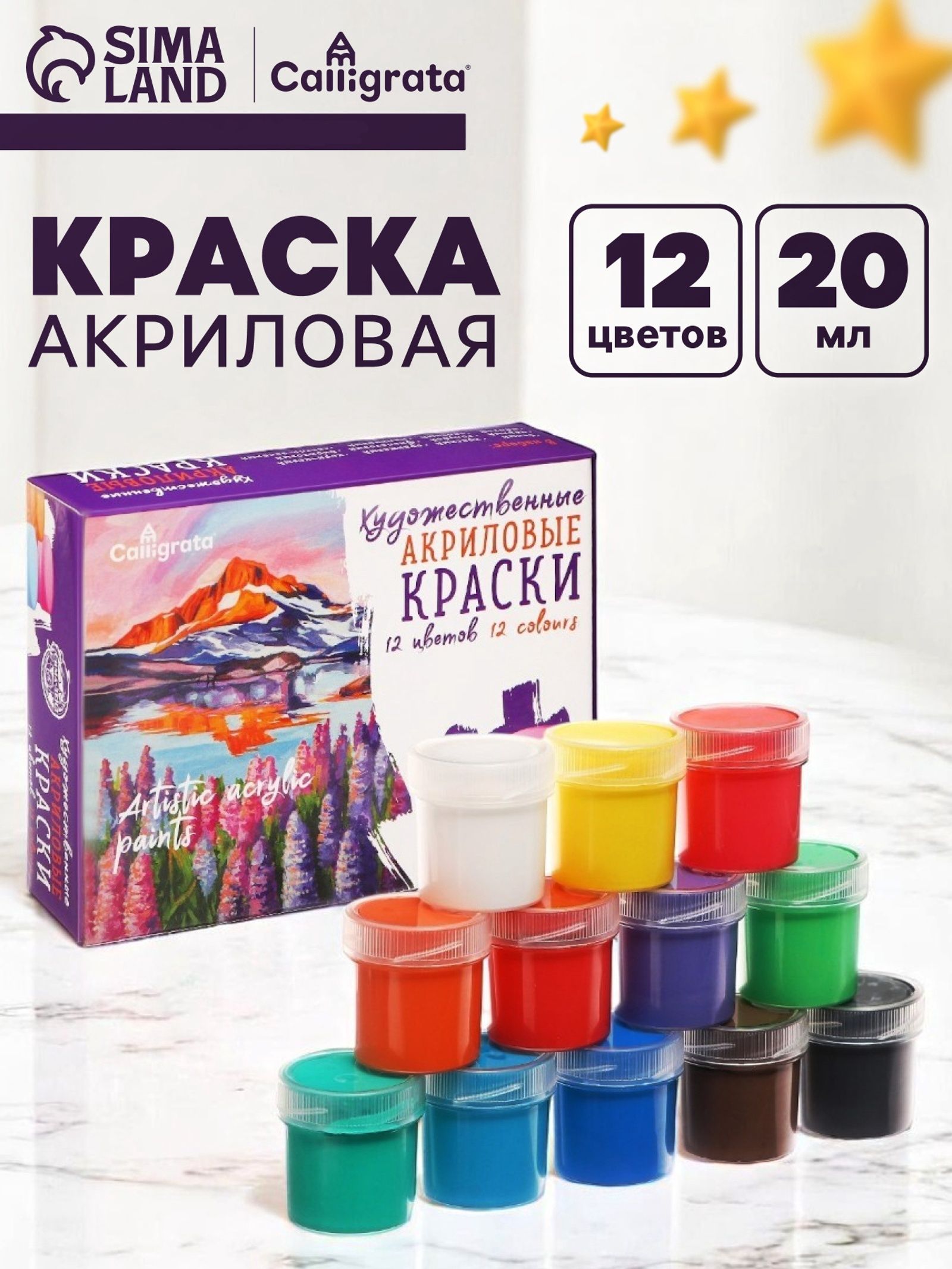 Акриловые краски Calligrata, 12 цветов по 20 мл, художественные, морозостойкие
