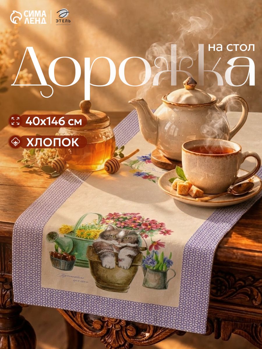 Дорожка на стол 40х146 см, Уютные коты0 заказов |