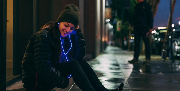 Светящиеся наушники понравятся любителям слушать музыку во время прогулок по вечернему или ночному городу. Светятся эти наушники не просто так, а в такт прослушиваемой в текущий момент композиции! Вторая полезная фишка – это встроенная гарнитура. Кроме того, они отлично подойдут ночным бегунам, чтобы на тех случайно не наехала машина или велосипед.