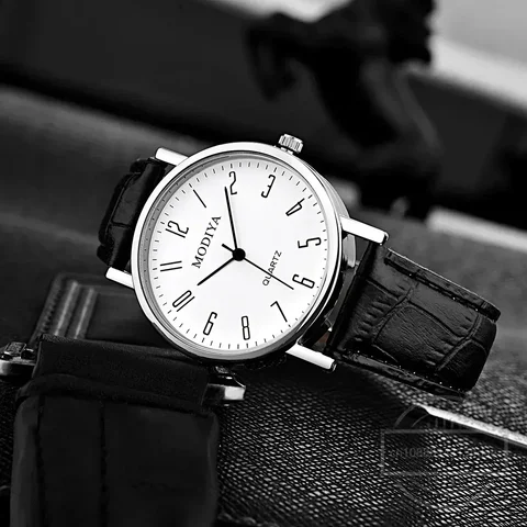 MOONBIFFY кварцевые мужские часы кожаный ремешок