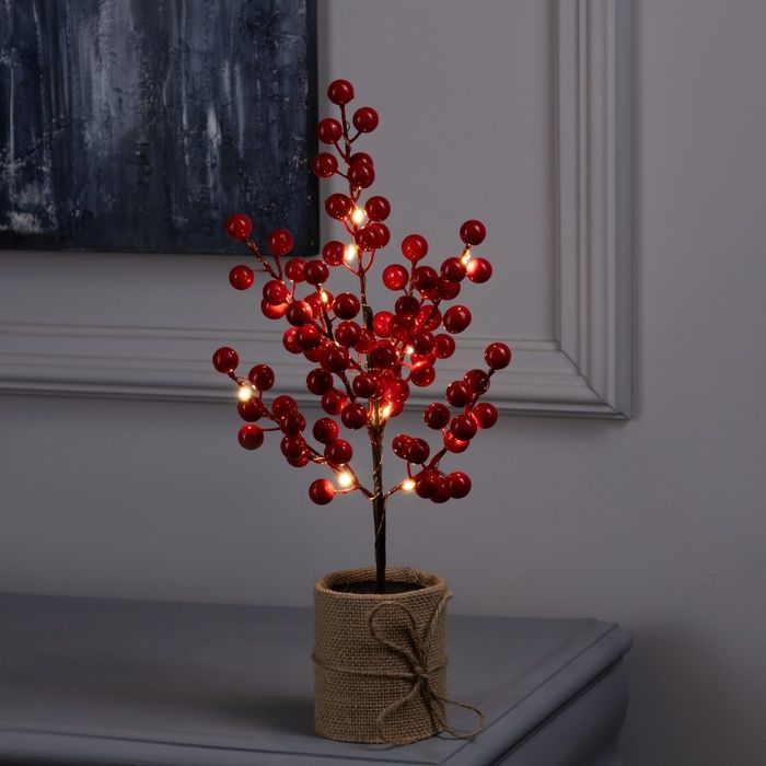 Светодиодный куст 0.35 м Ягоды 30 LED, AAx3, свечение тёплое белое