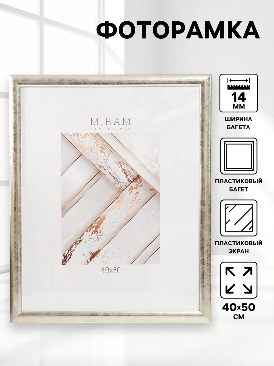 Фоторамка пластик, 40х50 см, МИРАМ 221 серебро / рамка для картин, постера, творчества / для интерьера